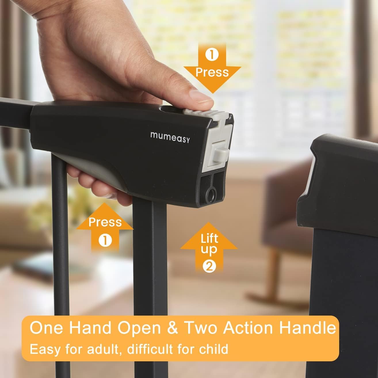 - One-handed Unlocking: Allows you to easily unlock the gate when you are busy. With an ergonomic double lock design, Only need one hand to open the Walking through gate whether you are holding a child or items
