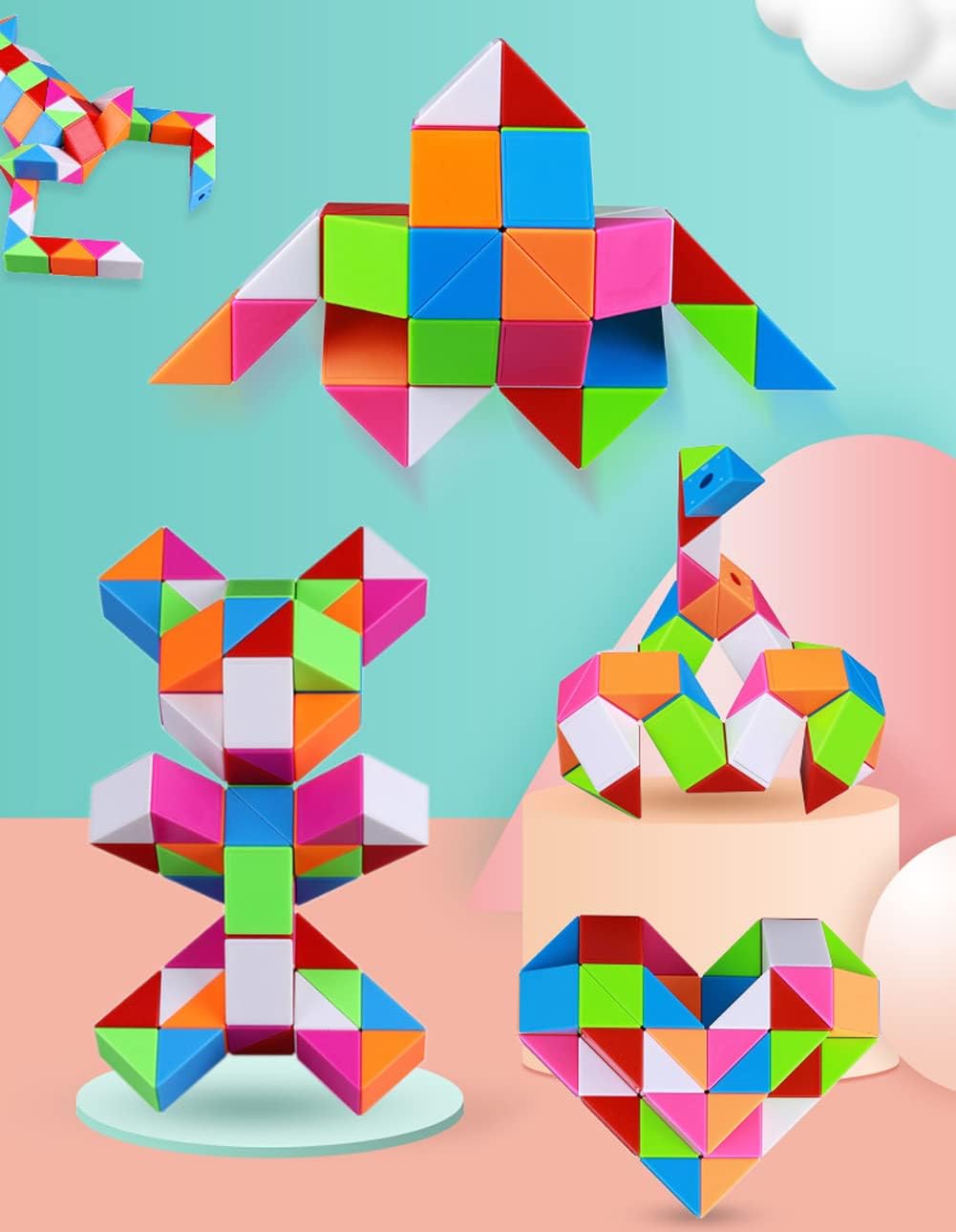 Fidget Magic Snake Cube Puzzles Twist Ruler Speed Cubes Brain Teaser Game Toys for Kids (60 BLOCK 1PACK)