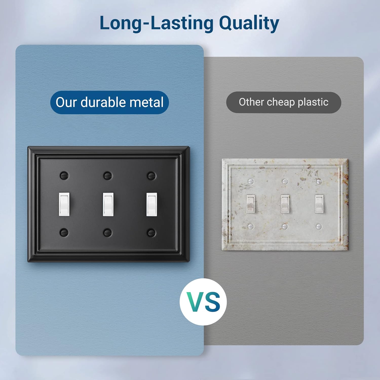 DEWENWILS Triple Toggle Wallplates, Black Light Switch Covers, Heavy Duty Metal Material, Pack of 2