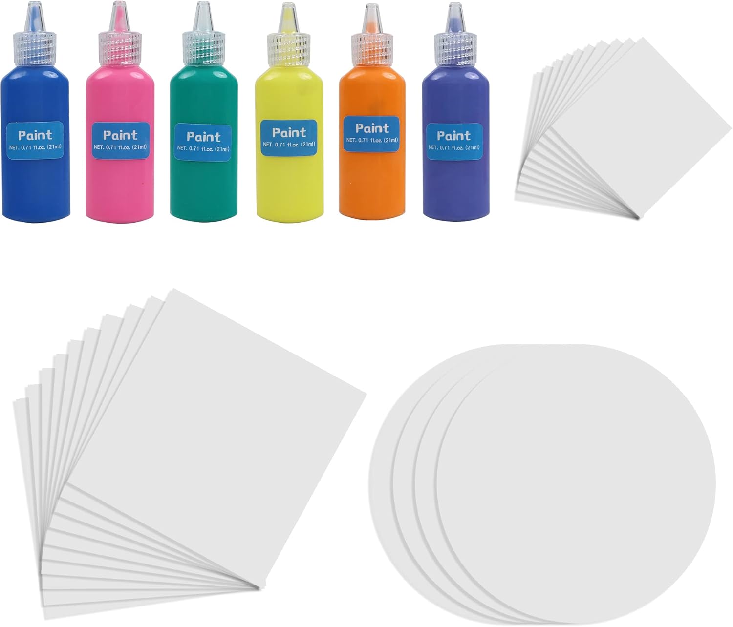 - Includes: 6 x Bottles of Colored Paint