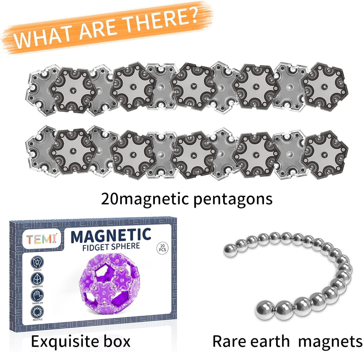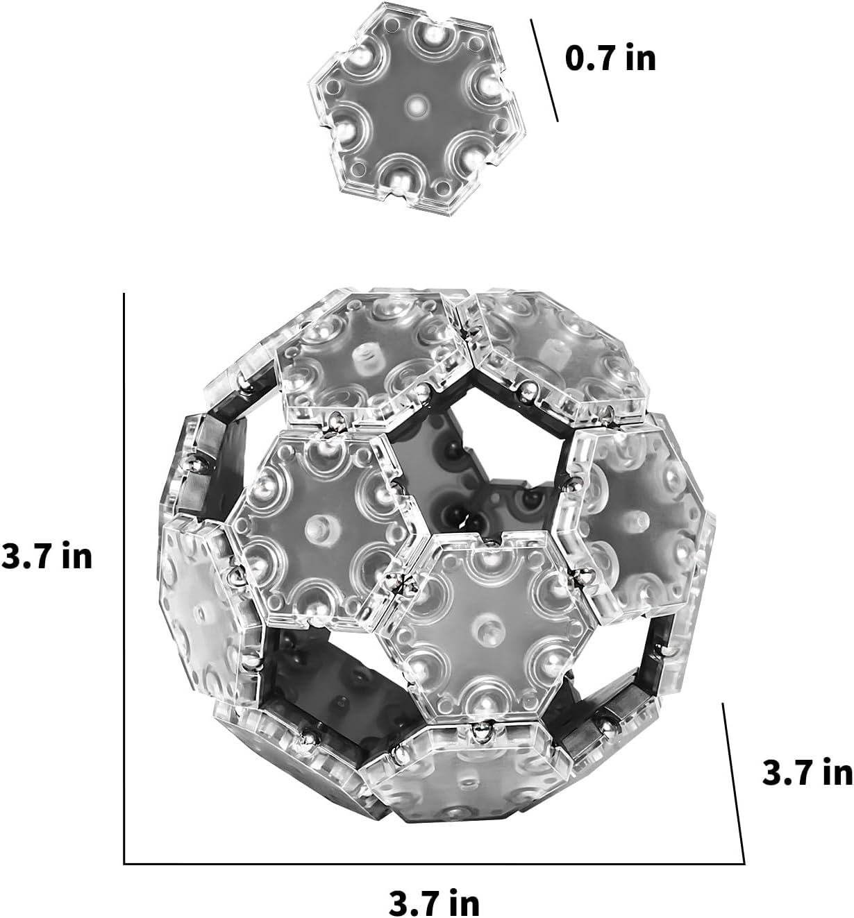 TEMI Fidget Sphere Toys of 12-Piece Set Pentagons Fun Executive Desk Toy Puzzles for Adults 14+ Years Old Boys and Girls (grey hexagon)