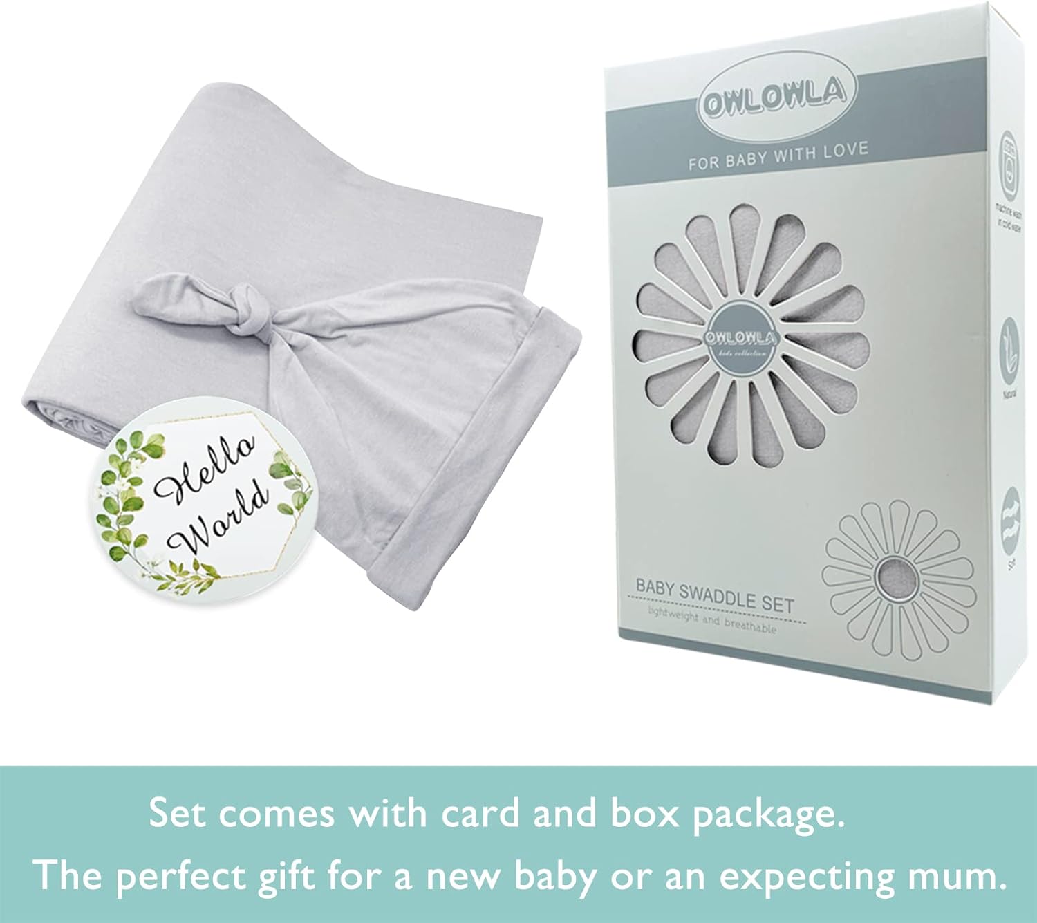OWLOWLA Swaddle Blanket and Hat Set Newborn Swaddle Wrap Baby Receiving Blanket for Baby Boys Girls(Light Grey)