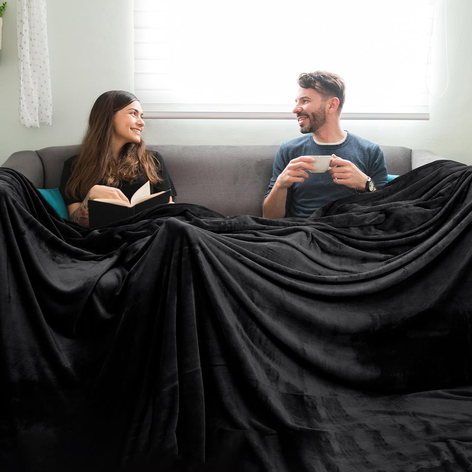 PHF Oversized King Fleece Blanket 120"x120", No Shed No Pilling Big Soft Blanket, Extra Large 10'x 10' Lightweight for Bed, Sofa Travel and Camping, Suitable for All Season, Black