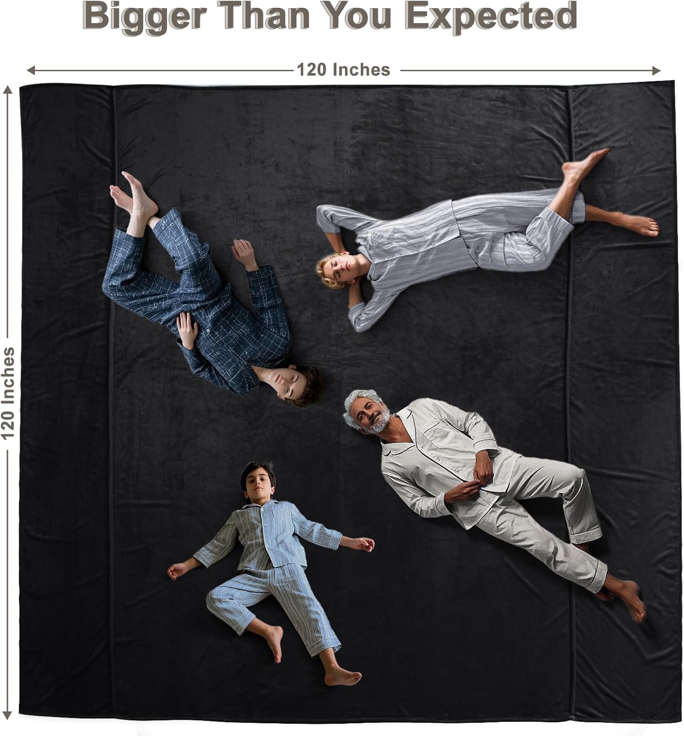- Extra Large Size Blanket: Measured by 120"x 120", It's Bigger than you can imagine, Nearly double the size of a standard king-size blanket, which means it can surround you and your families with just one blanket.