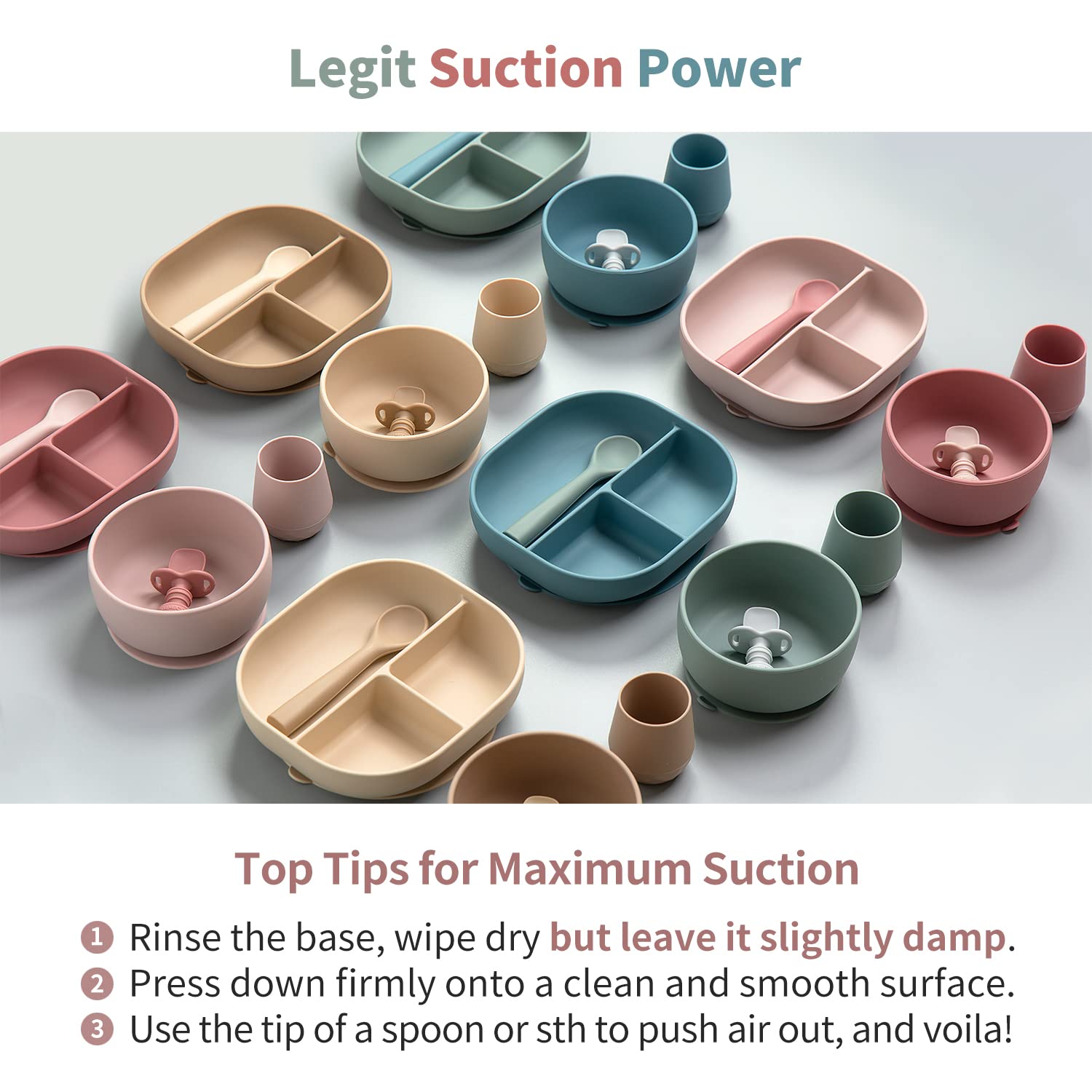 - Strong Suction Power - Our Plate and Bowl stick firmly to smooth surfaces, thanks to a larger Suction Base that creates the ultimate hold. Plus, our divided plate features an impressive height of 1.9β³ which is approx 35% more than average!