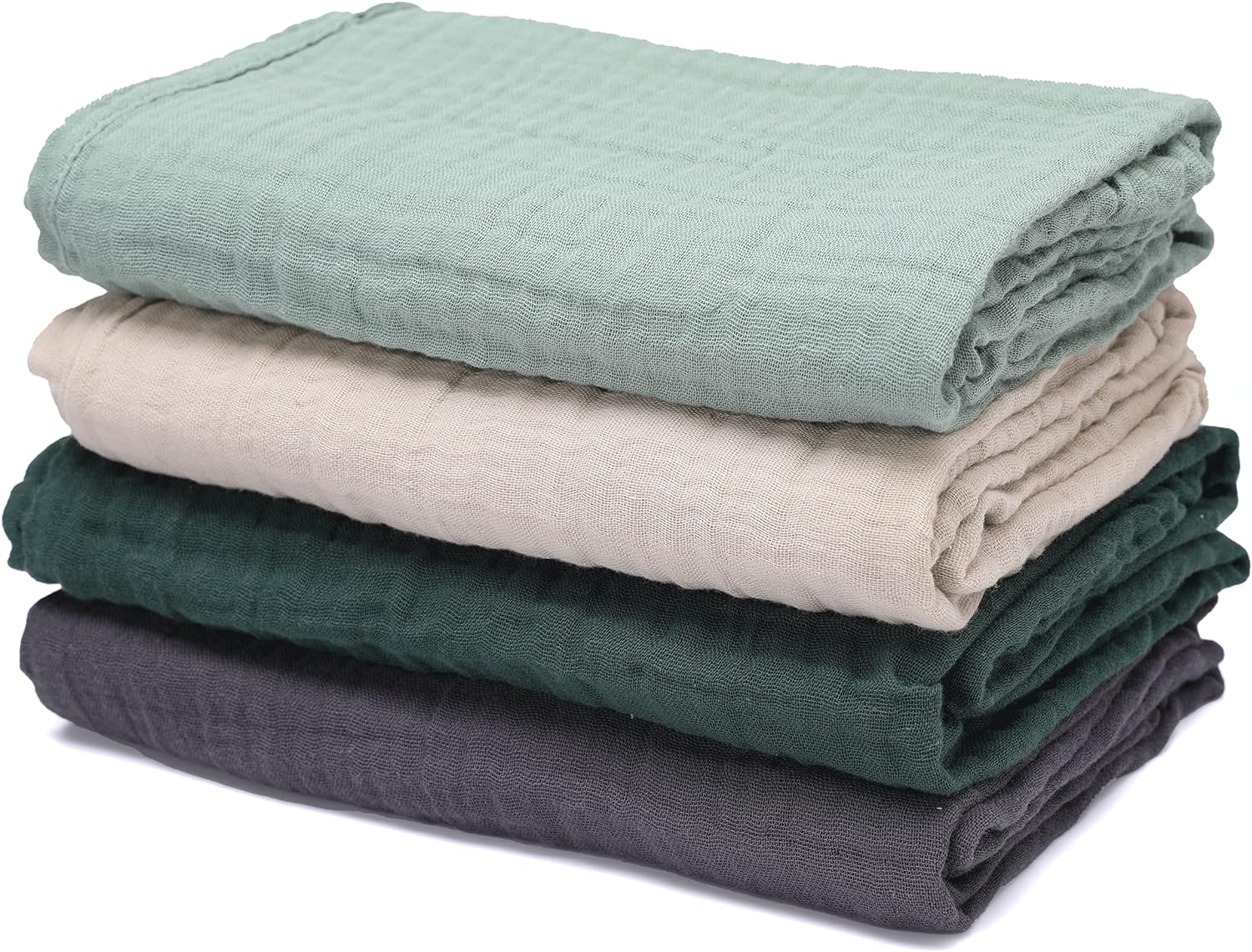 Baby Muslin Swaddle Blankets for Boys and Girls,4-Pack Breathable and Skin-Friendly,Wrap Soft Silky Cotton Muslin Swaddle Blankets/Atrovirens/Green/Apricot White/Grey…