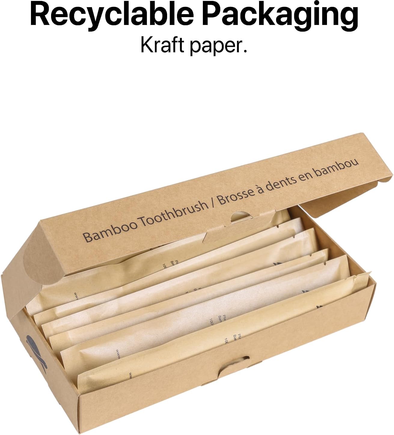 - Minimal Packaging - We know the last thing our customers want is excessive packaging. That is why we package our Bamboo Toothbrushes inside aqua coated Kraft paper packaging. Bristles bent? Simply soak the bristles in hot water to retain the original shape!