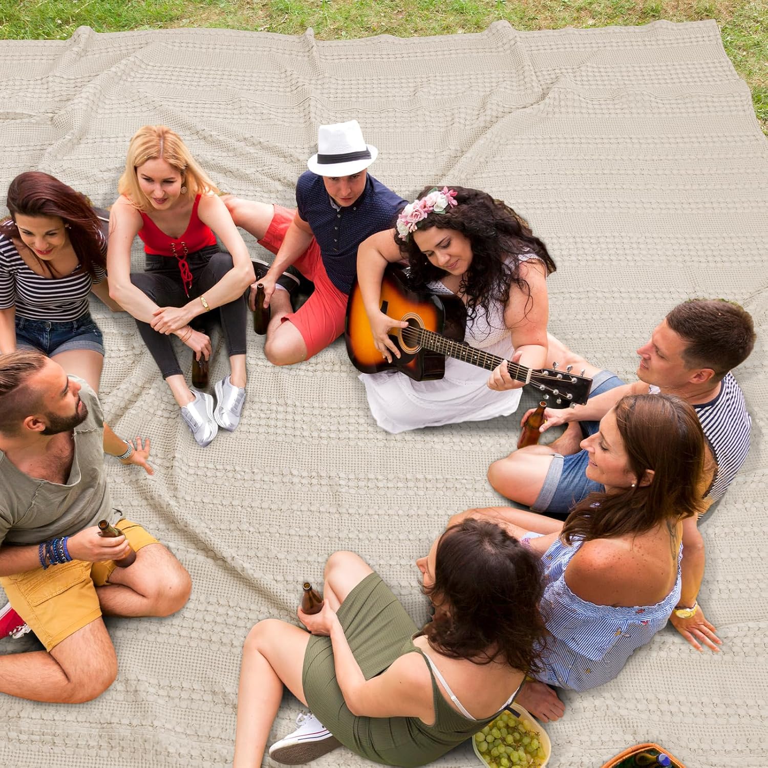 PHF 100% Cotton Waffle Blanket Oversized King 120"x120", Lightweight Breathable Extra Large 10'x10' Summer Blankets for Bed, Giant Big Luxury Aesthetic Woven Bedding for Home Decor, Oatmeal