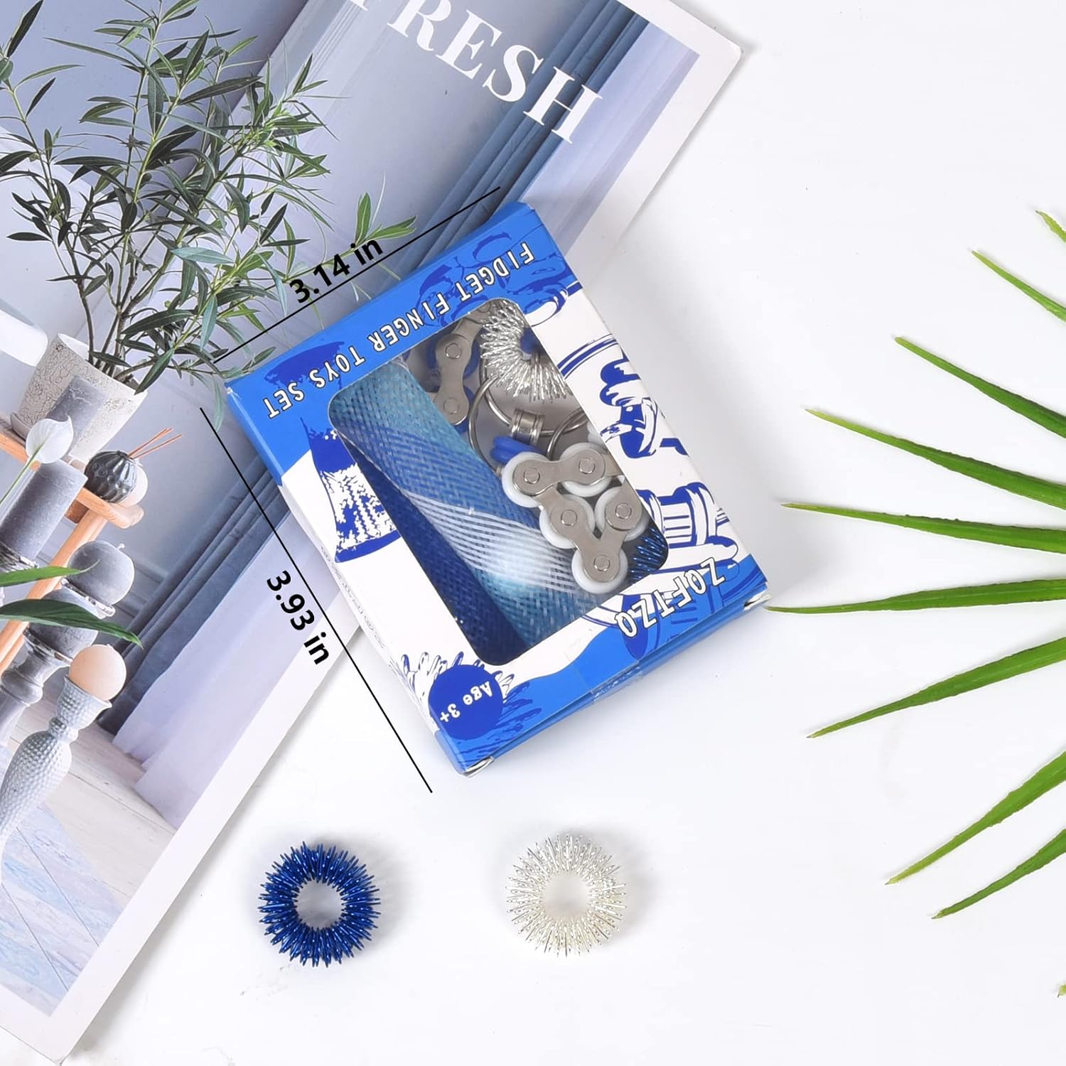 - 🎁8 Pcs Fidget Packs: 2 Flippy Roller Chains, 2 Marble Mesh Fidget Toys,2 Spiky Sensory Fidget Rings,2 Six Roller Bike Chain Fidget.4 kinds of various fidget toys help you relieve stress.