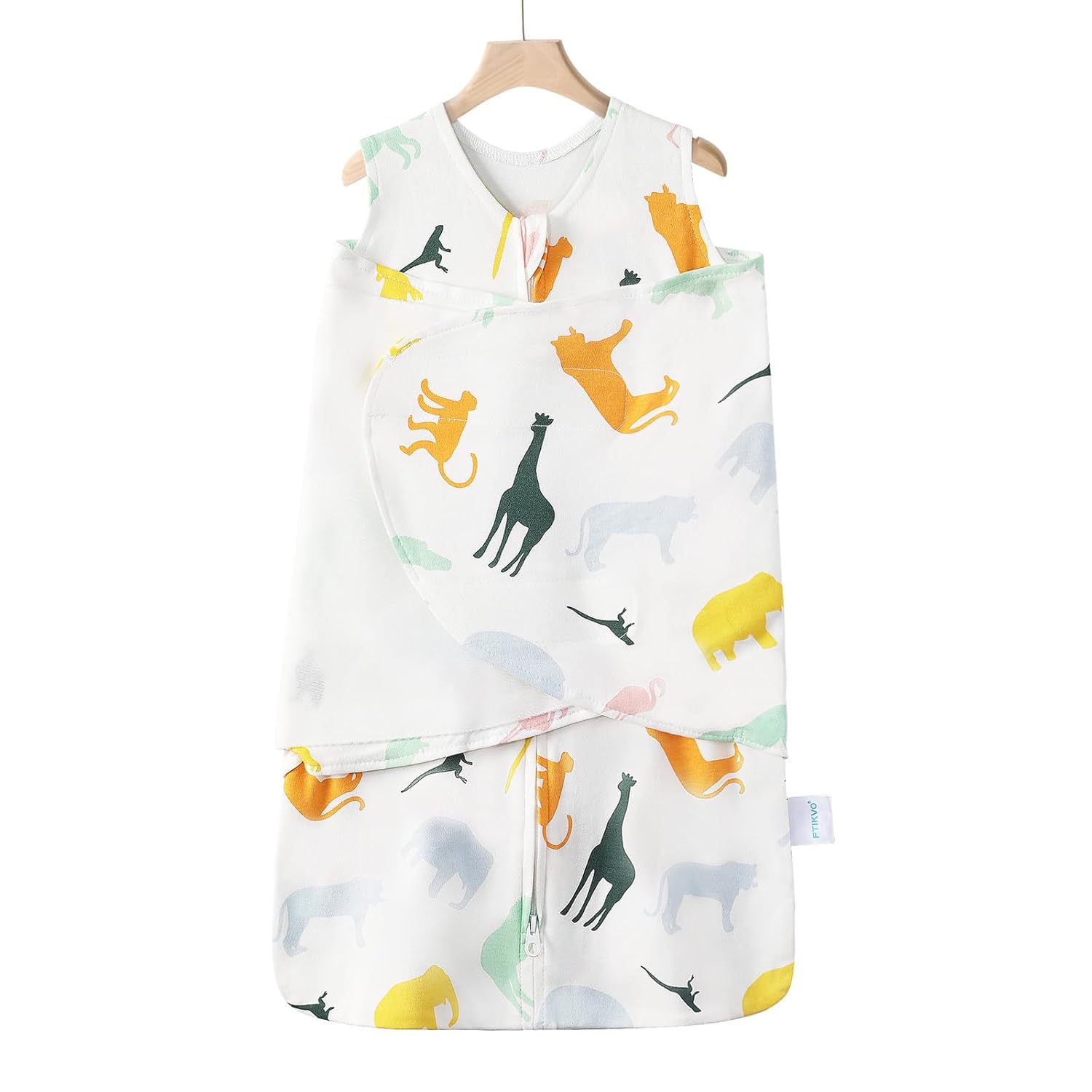 Swaddle-Blanket Baby Girl & Boy Swaddles Newborn Infant Transition 100% Cotton Wrap Blankets, 3-Way Adjustable Wearable Blanket, TOG 1.0 (Colorful Zoo,Small,0-3 Month)