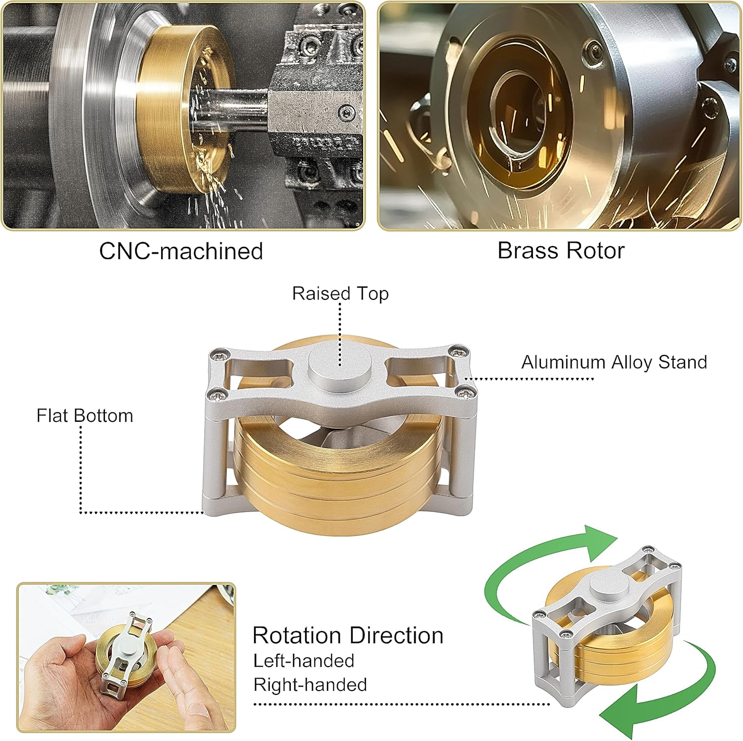 - 【EXQUISITE BRASS KINETIC SPINNER】Crafted through CNC machining with a copper rotor and aluminum stand. This mesmerizing fidget spinner boasts an engraved spiral pattern, creating a 360° optical illusion effect when spinning.