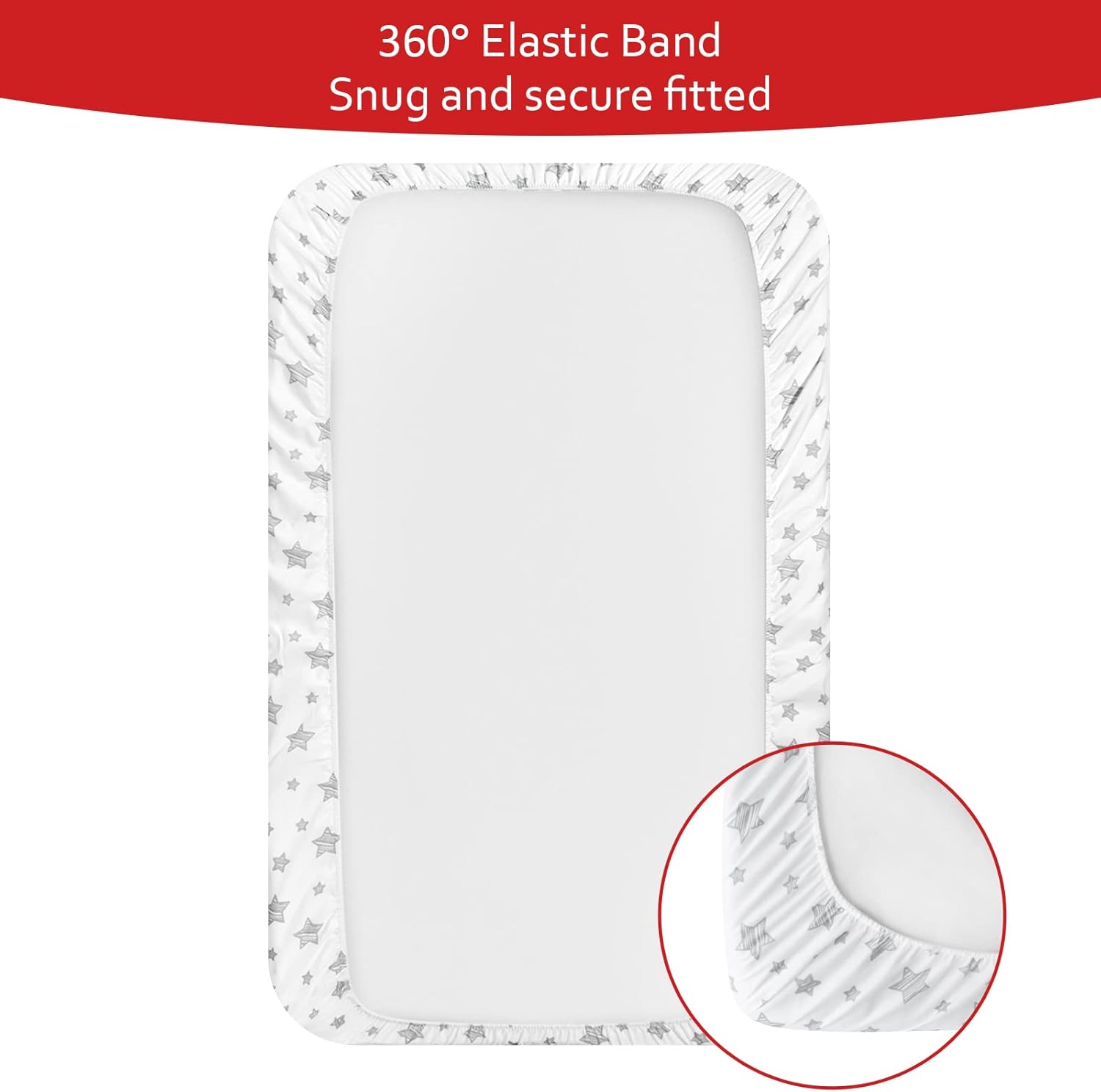 - Snug Fit with Standard Size: The 4 pack mini crib sheets fits perfectly on most standard mini crib mattresses, dimensions 38"X24"X 5". Our mini crib sheets have an elastic band around the entire edge, a feature that makes the Sheet safer for babies.