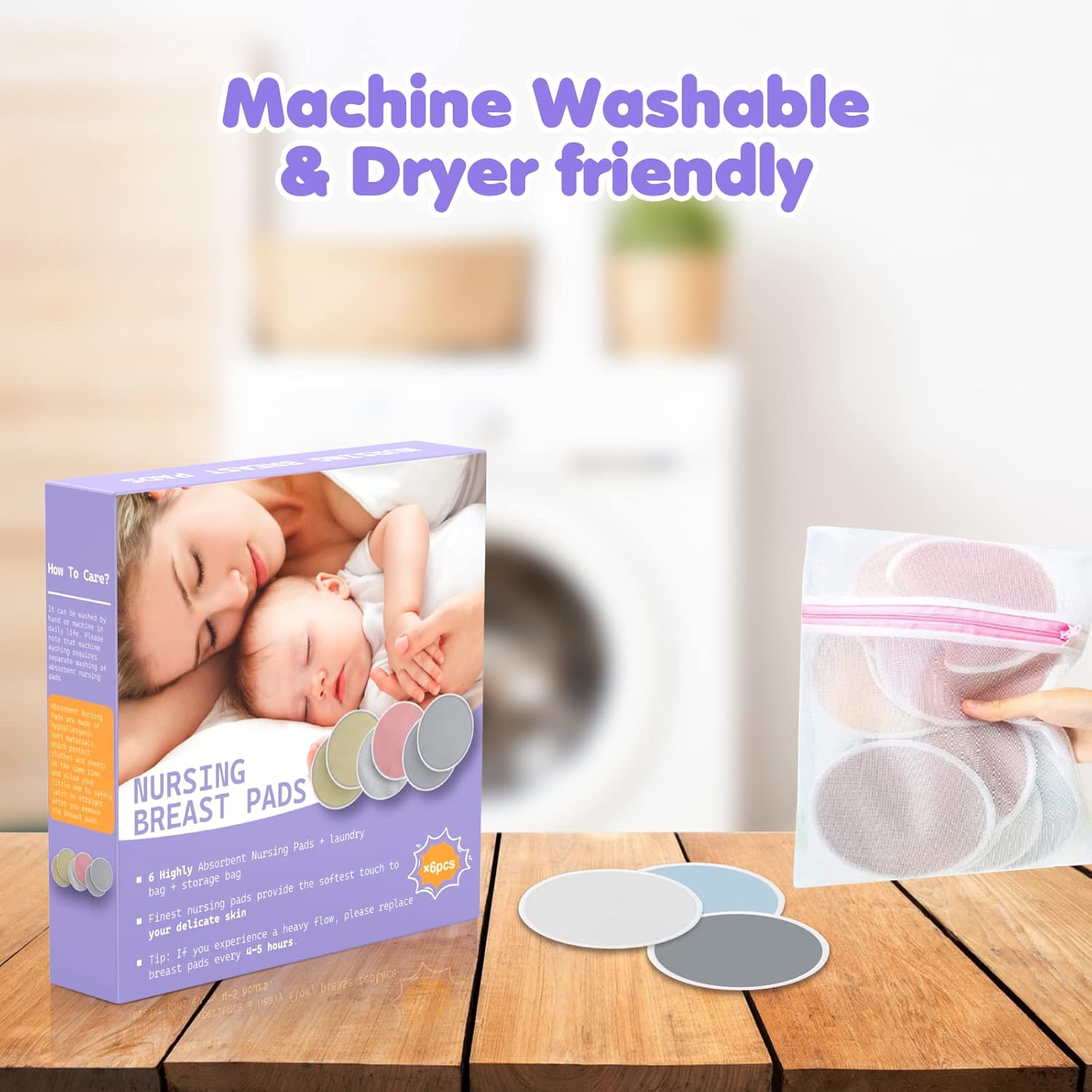 - WHAT YOU GET: This set includes 6 nursing pads, a laundry bag, and a travel storage bag, all packaged in a gift box—making it a great choice for new moms. For best results, wash before initial use. Machine washable and dry-able.