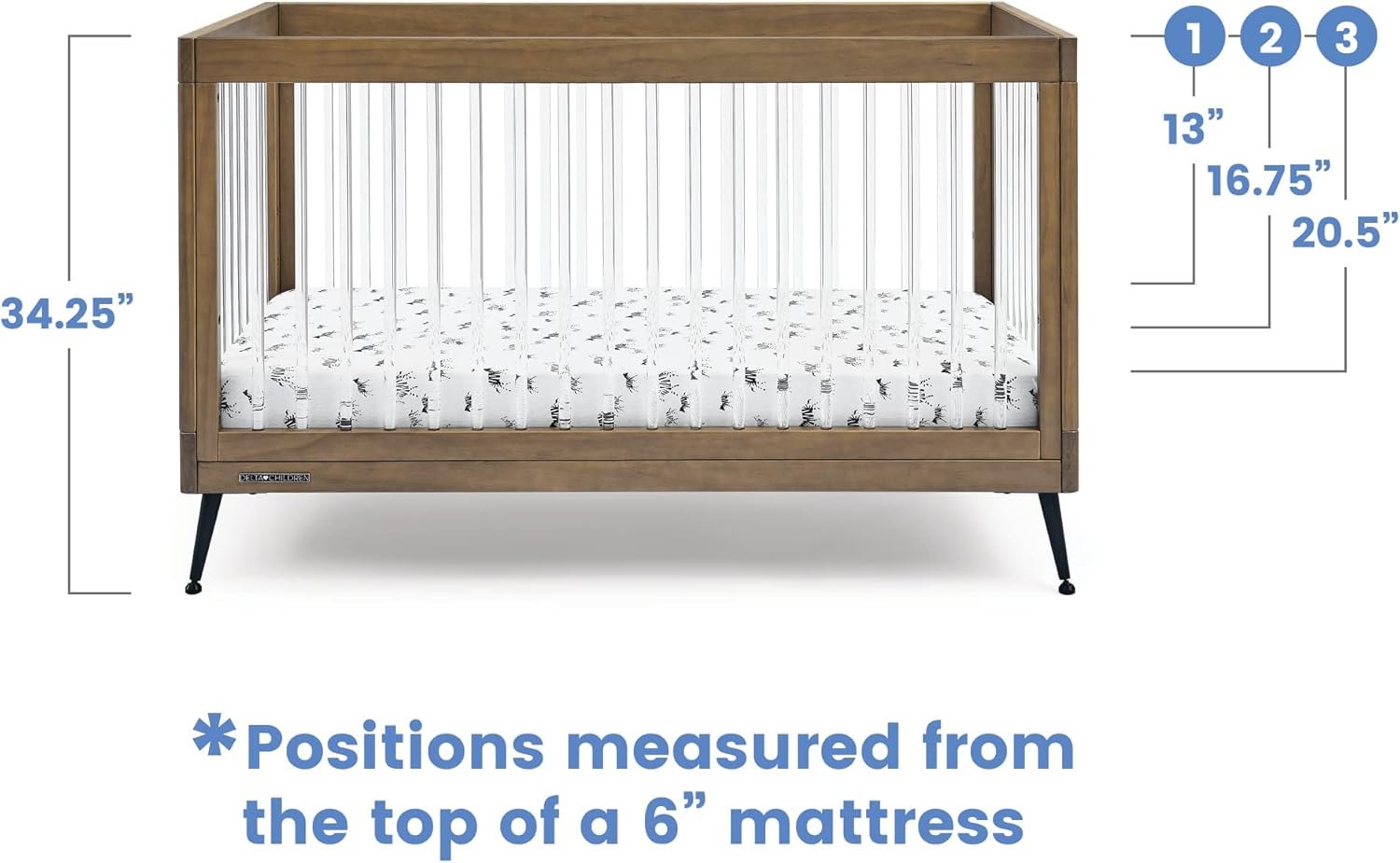 Delta Children Sloane 4-in-1 Acrylic Convertible Crib - Greenguard Gold Certified, Acorn/Matte Black