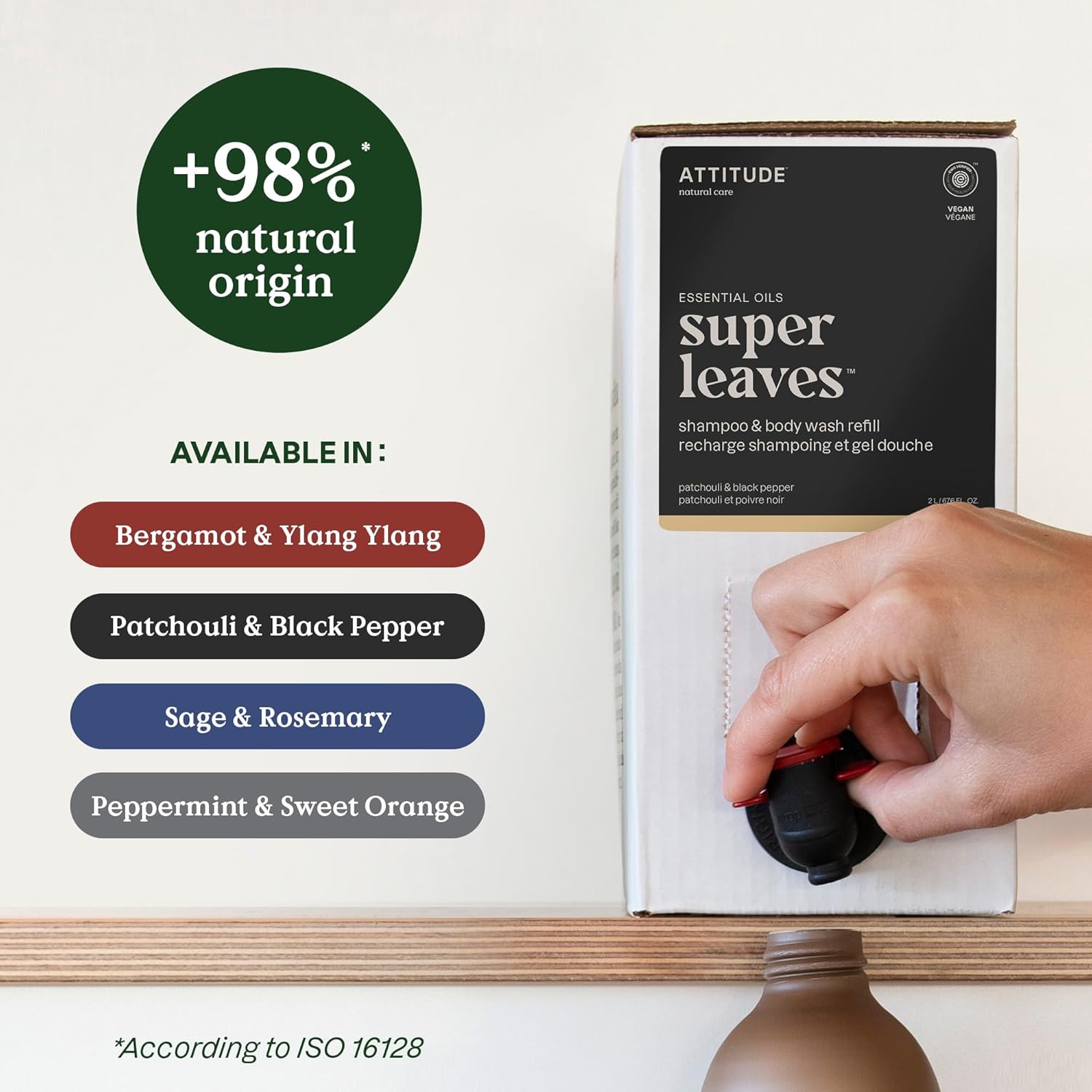 ATTITUDE 2-in-1 Body Wash and Hair Shampoo, EWG Verified Shower Gel, Dermatologically Tested, Made with Naturally Derived Ingredients, Vegan Personal Care, Sage and Rosemary, 67.6 Fl Oz