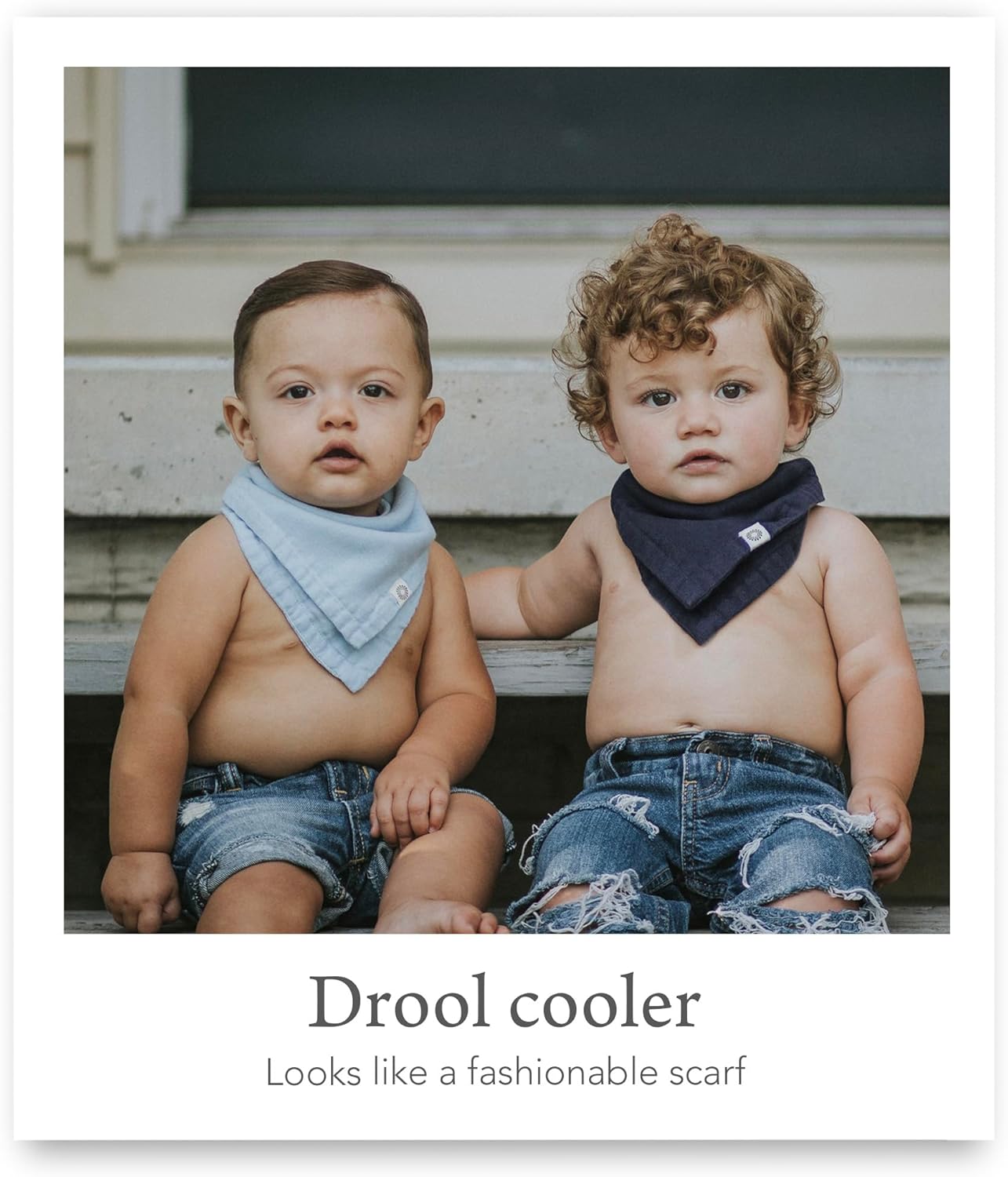 - THE ULTIMATE SPIT-UP SOLUTION FOR BABY BOYS & GIRLS - Mamas, rejoice! Our baby drool bibs are ultra-absorbent, boasting a whopping 8 layers of organic muslin. They're like little superheroes that soak up all the spit-up and drool, leaving your baby's adorable outfits spotless. Translation? Less laundry for you – hallelujah! They also fit comfortably under a jacket collar since they wear more like a soft scarf, as opposed to a stiff bib.