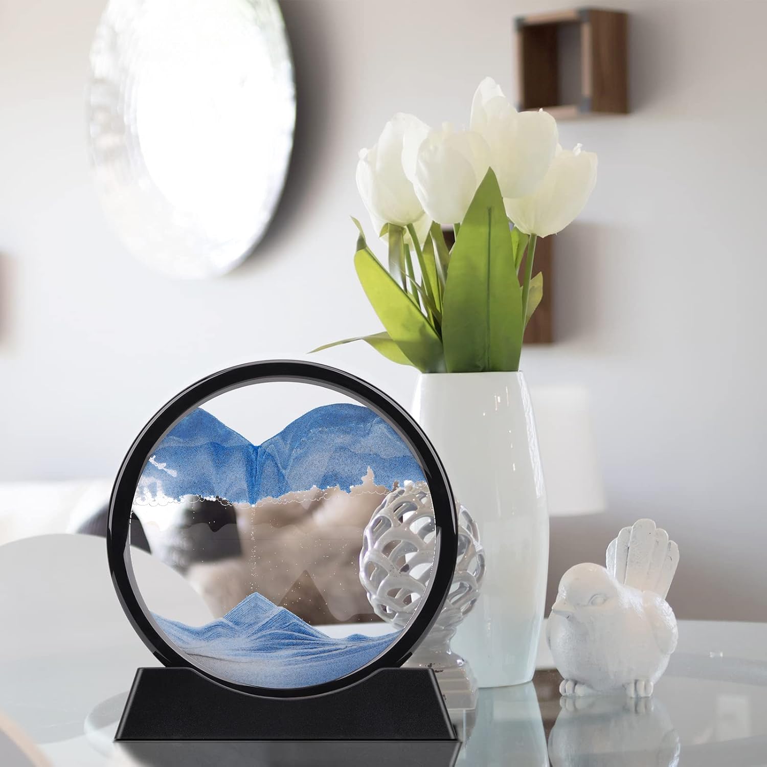 - SAND ART DÉCOR:The perfect home/office desk decoration. A natural landscape painting makes your decorative environment in the middle of landscape, quiet, natural, elegant and indifferent. Watching the different sandscape pictures formed with the flowing of sand, you can feel the magic of the creator, and every change is so natural and beautiful