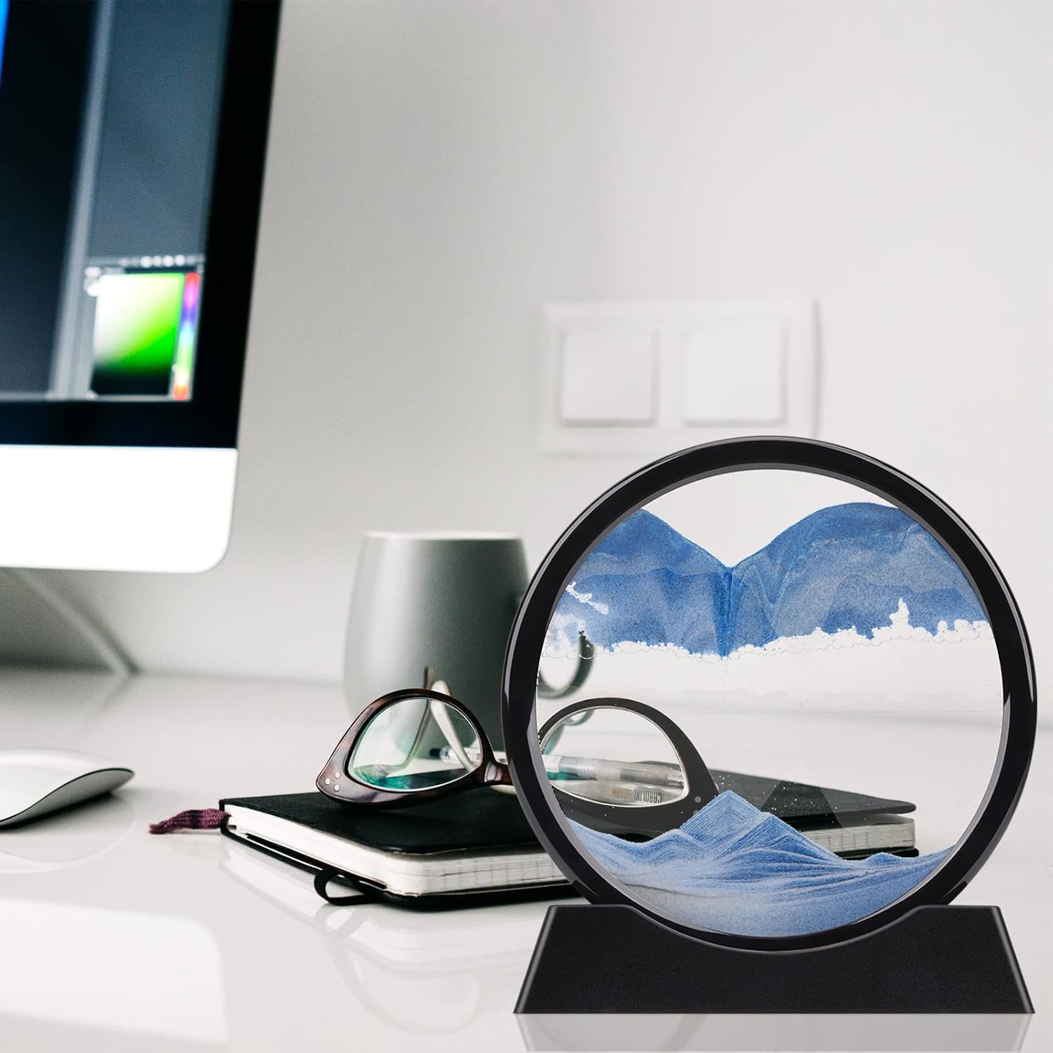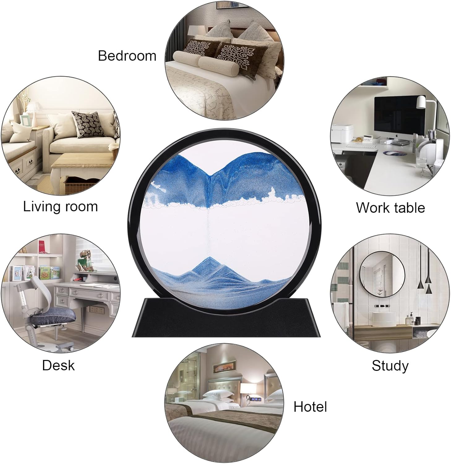 - CALMING SENSORY TOY: Moving sand pictures create a new sand picture with each turn.The sand never makes the same design twice. Watching the colored sand slowly tumble down the circle is relaxing and calming to the mind, which can relieve stress, relax your eyes,cultivate patience. give you unexpected surprise
