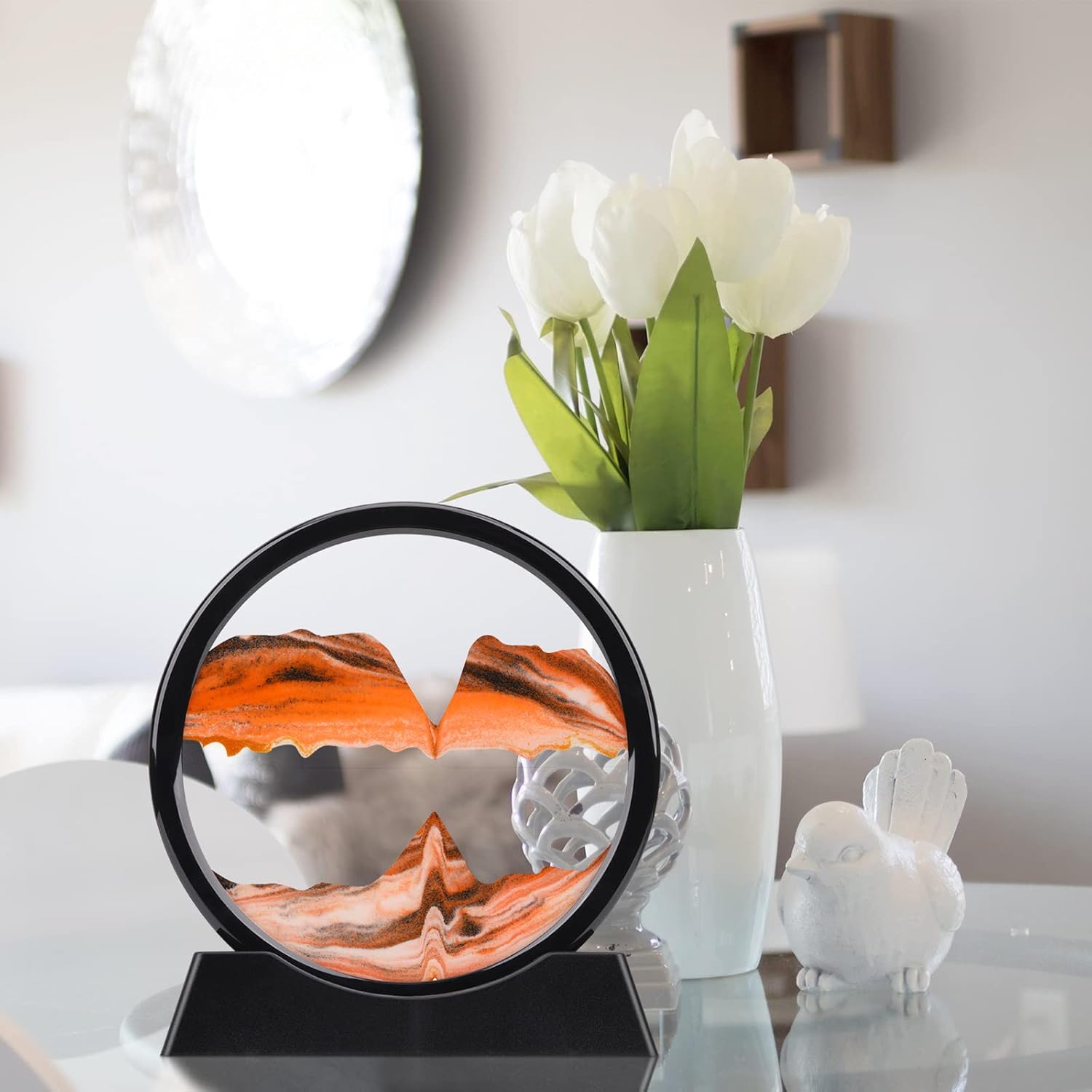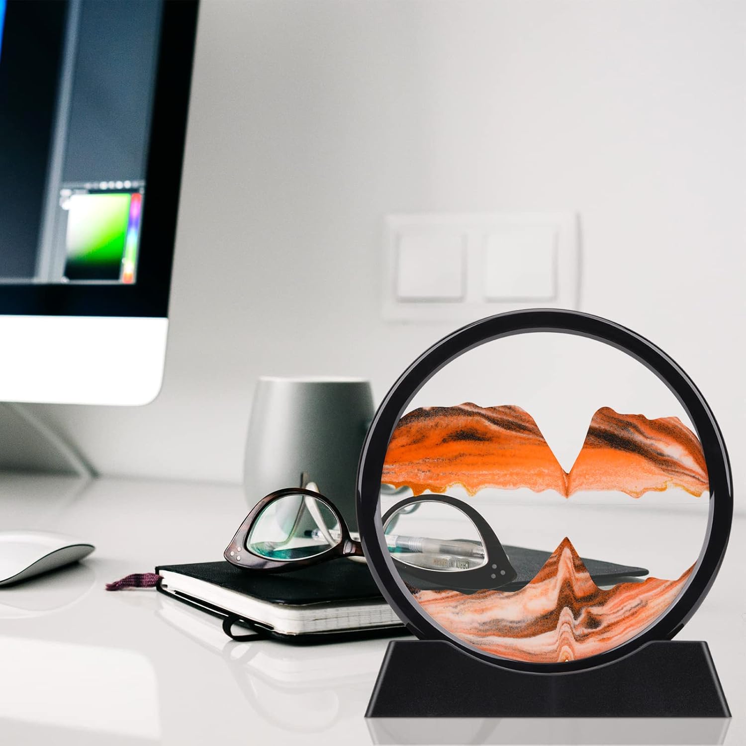 - SAND ART DÉCOR:The perfect home/office desk decoration. A natural landscape painting makes your decorative environment in the middle of landscape, quiet, natural, elegant and indifferent. Watching the different sandscape pictures formed with the flowing of sand, you can feel the magic of the creator, and every change is so natural and beautiful