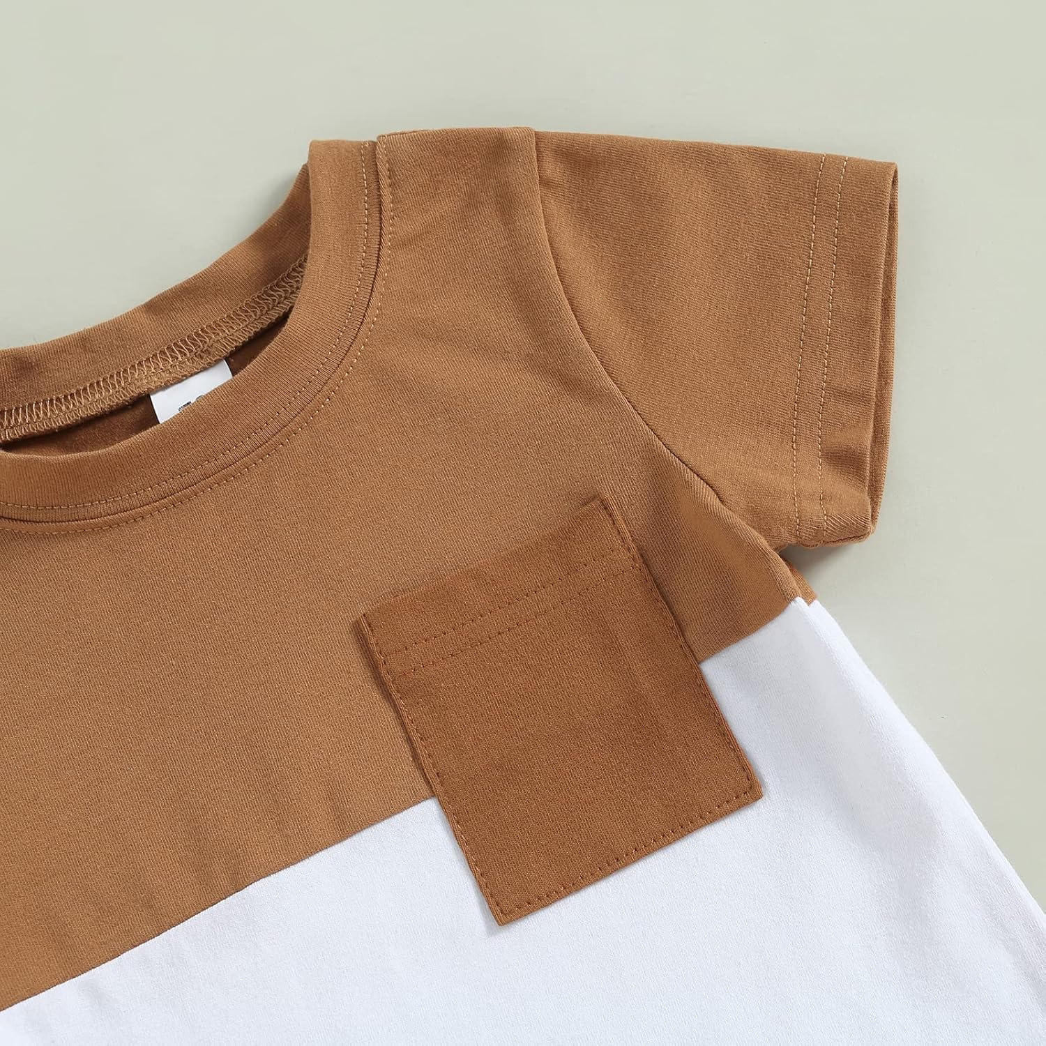 fhutpw Baby Toddler Boy Clothes Summer Outfits 6 12 18 24 Months Patchwork Short Sleeve T Shirt & Shorts Sets with Pockets