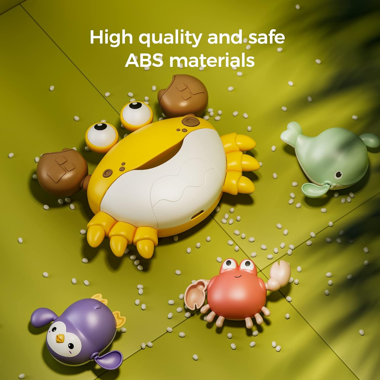 TUMAMA Baby Bath Toy,Bath Bubble Maker Machine with Music,3 Wind-Up Bathtub Toys,Crab Shower Water Toy for Toddlers Kids Boys Grils,4 Pieces
