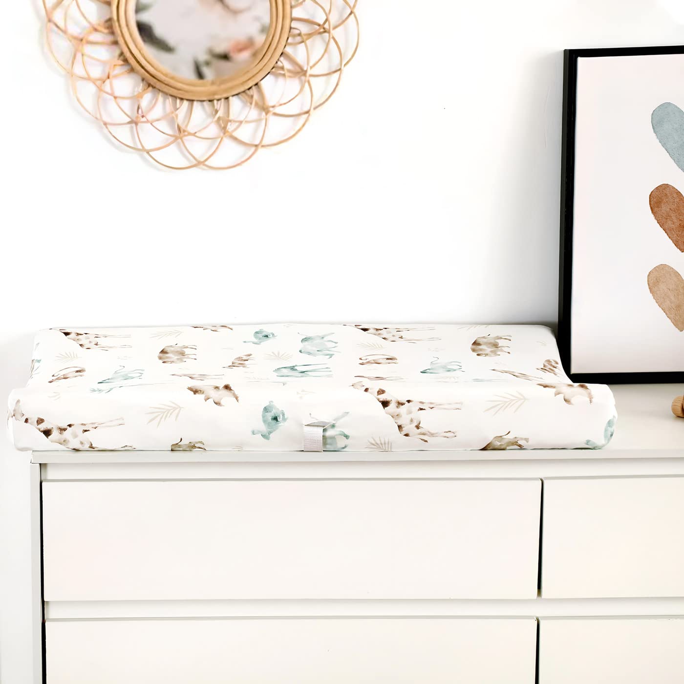 GRSSDER Stretch Ultra Soft Jersey Knit Changing Pad Cover Set 2 Pack, Change Table Pad Covers Fit 32"/34" x 16" Pads Safe and Snug, Stylish Pattern for Boys and Girls, African Savannah Animals