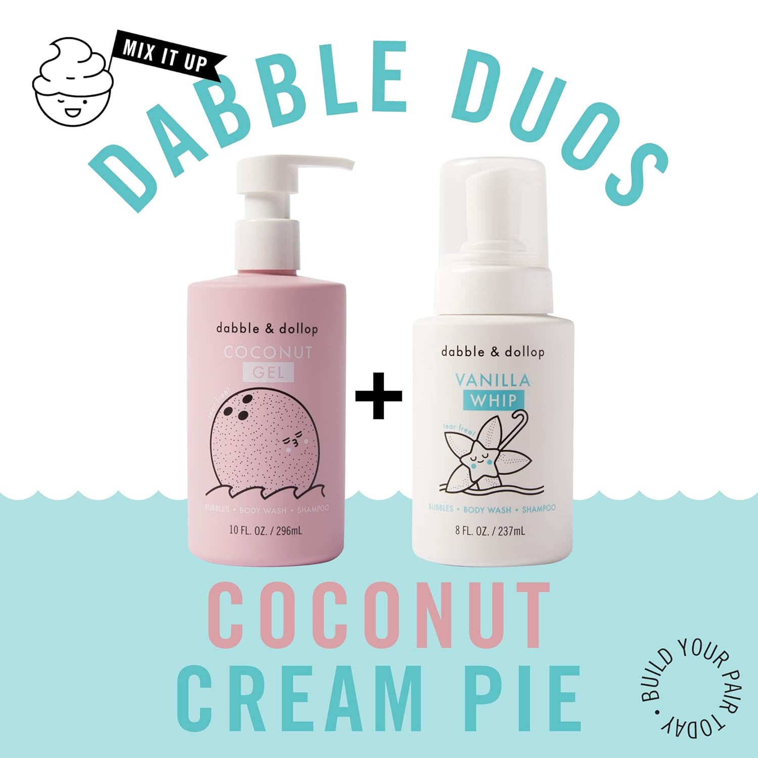 Dabble & Dollop Coconut + Vanilla Body Wash & Shampoo – 3-in-1 Natural Bubble Bath for Kids, Made in USA, No Parabens or Sulfates, Vegan, Gluten-Free, Tear-Free (2-Pack)