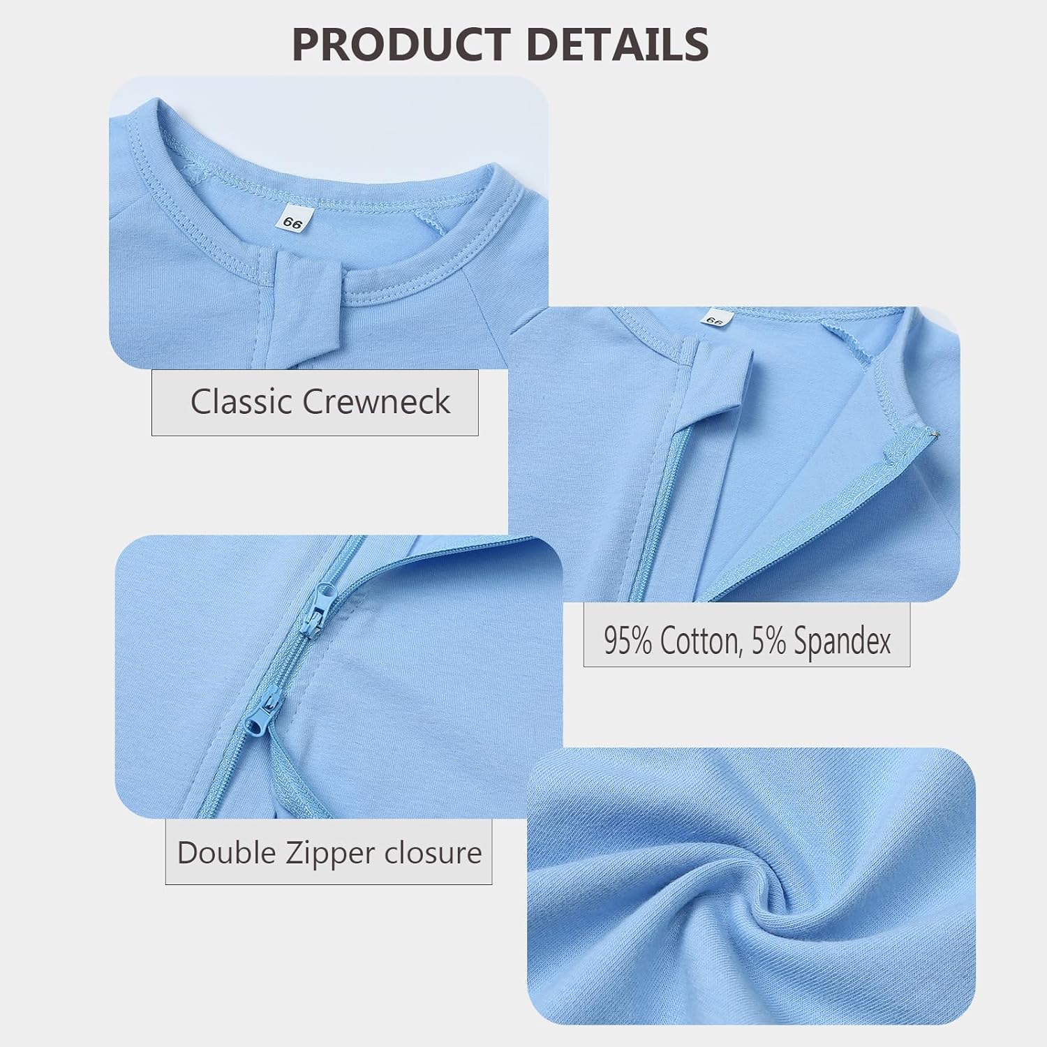 • 【OPTIMAL FEATURES】: Zipper closure for a cute stylish look and quick and easy dressing and diaper changing