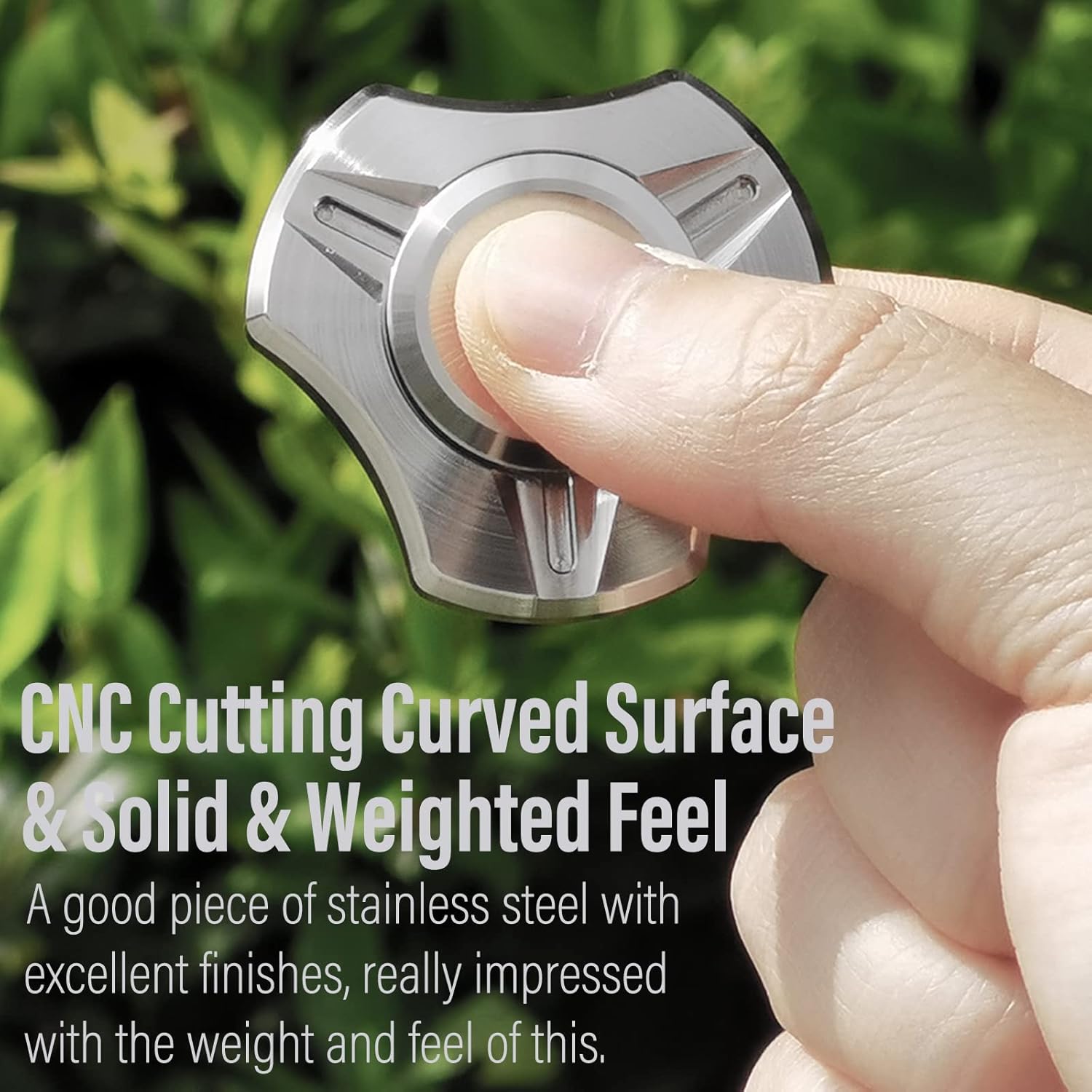 - [Stainless Steel Metal] This spinner is a good piece of stainless steel metal, rounded and original CNC cuttin finish, it never lost its shine and doesn't make your fingers smell bad. Finger holds are smooth and comfortable.