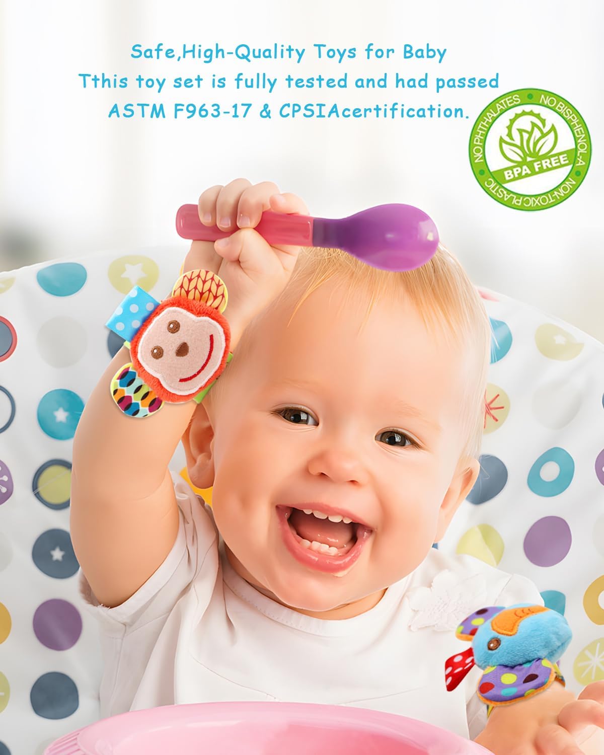 - CUTE DESIGN -- All Wrist Rattles and Foot finder socks have bells inside, wrists rattles attach with simple hook and loop, easy to put on and off. Baby socks with breathable and soft knitted fabric,very comfortable for little babies to wear.