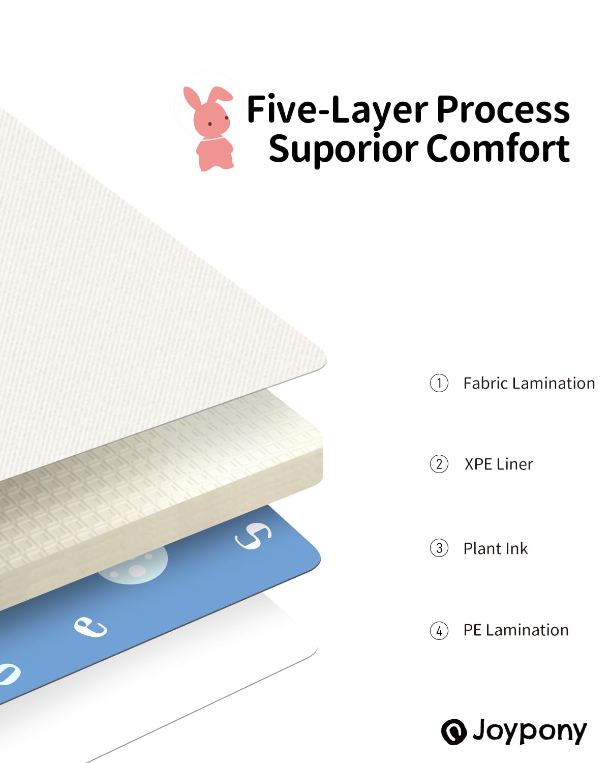 - [DOUBLE SIDE CLOTH & XPE] - When it comes to your baby's playtime, versatility is key. That's why Joypony baby play Mmat features two different surface materials: a plush cloth side for cozy comfort and a durable PE side for easy cleaning and long-lasting use. Switch between these surfaces to suit your baby's needs.