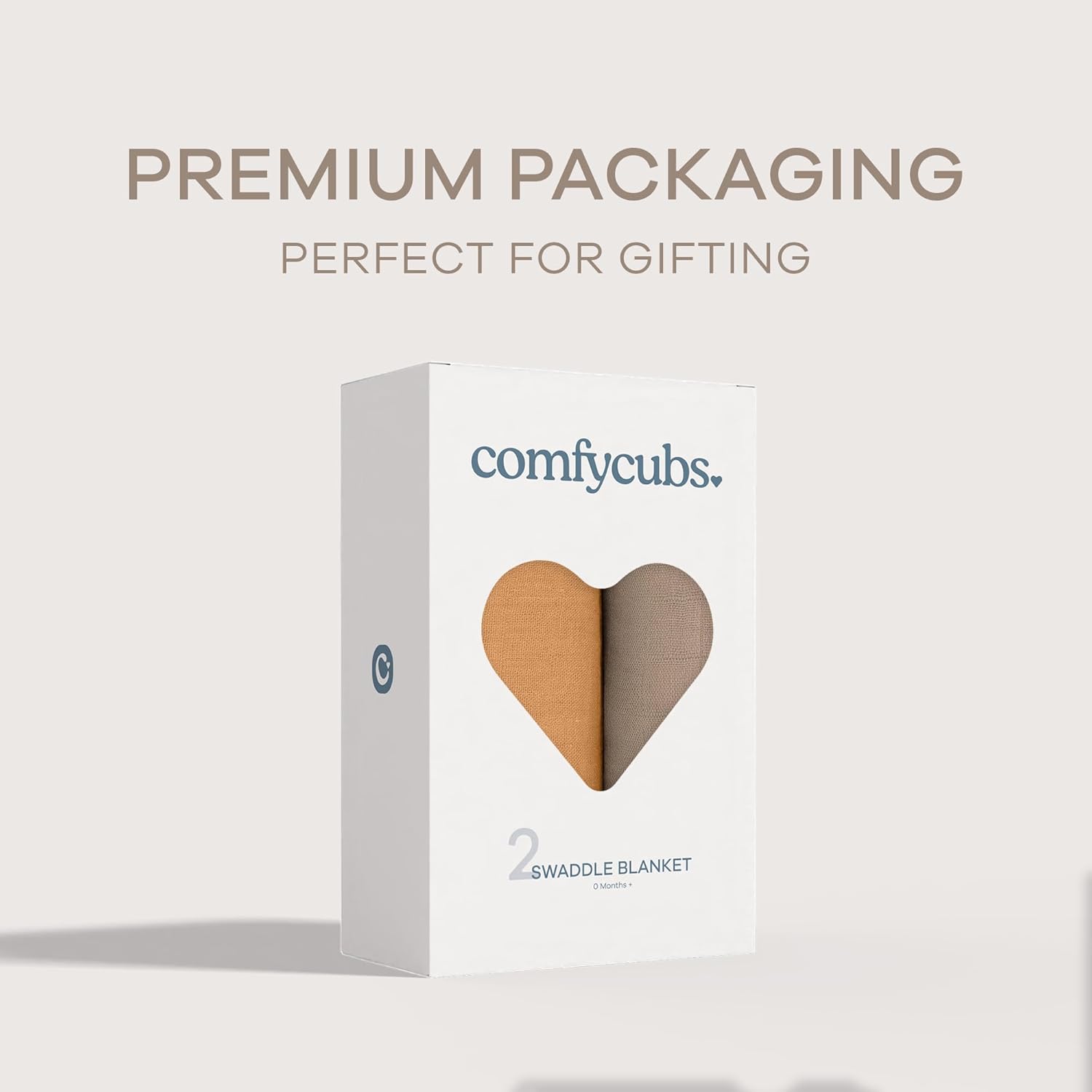 Comfy Cubs Muslin Swaddle Blankets Pack of 2 - 47 x 47 Inch Soft Cotton Baby Blanket Set, Large Multipurpose Wraps for Newborns - Self-Soothing Swaddles for Newborns - Cedar & Caramel