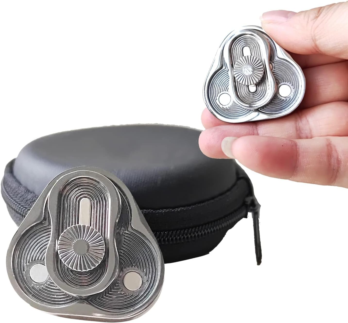 - [Everyday Carry] These relaxing mini quiet fidget toys are portable and small enough to play with one hand. This way you can easily keep these delicate spinner toys in your pocket. These magnetic fidget toy are perfect for travel, work, home or pencil cases. You can play anywhere in the office, home, school, subway, station, outdoors, etc. Also, this edc fidget toy comes with a separate storage box for you to protect and store your desk fidgets for adults toys.
