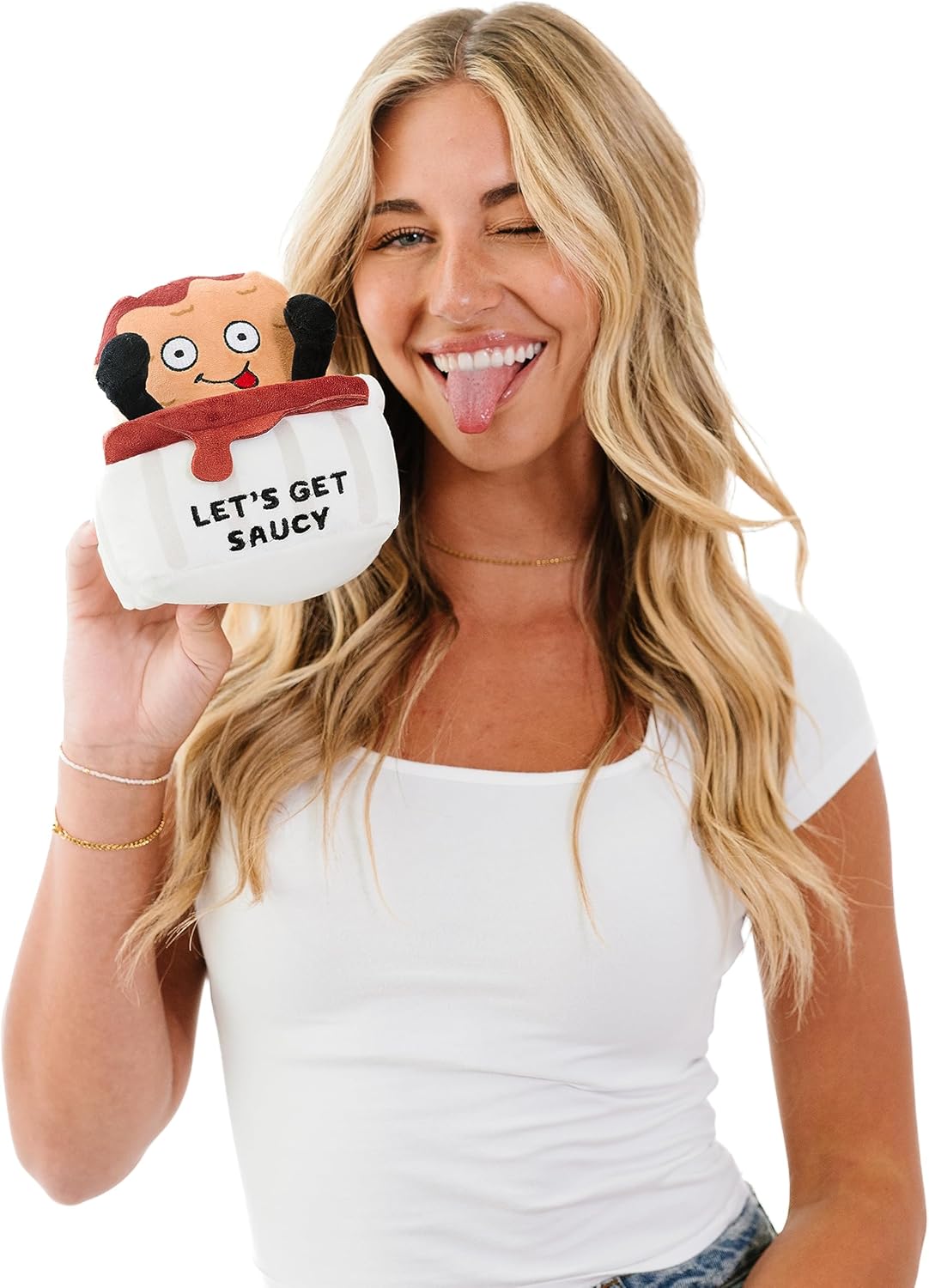 - FUNNY SUPERFOODS Can you hear the laughs already? Now here’s a Punchkin Foodie that’s ready to make a big splash! BBQ sauce for everyone (even your shirt). Have fun with this comical, embroidered chicken nugget that encourages everyone to “LET’S GET SAUCY”!