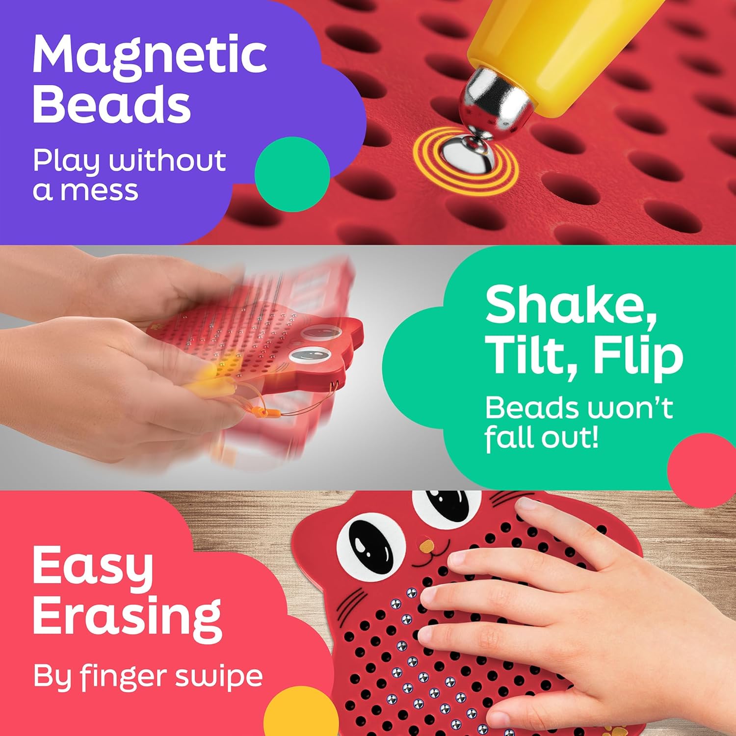 Magnetic Drawing Board for Kids & Toddlers with Beads and Magnet Stylus Pen - Magnetic Travel Toy for Airplane & Car Ride Activities for Kids
