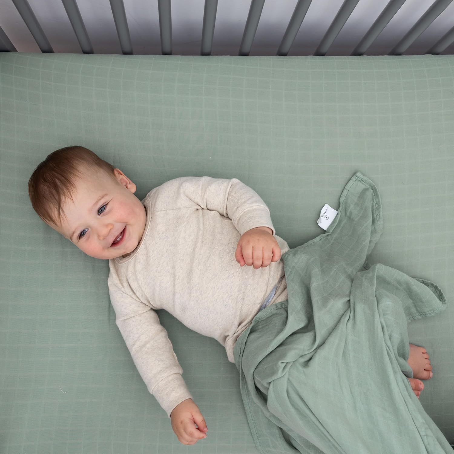 Organic Muslin Fitted Crib Sheet - Organic Crib Sheet for Standard Crib and Toddler Mattresses, Soft and Breathable, Solid Sage Green, Boho Baby, 28”x52”