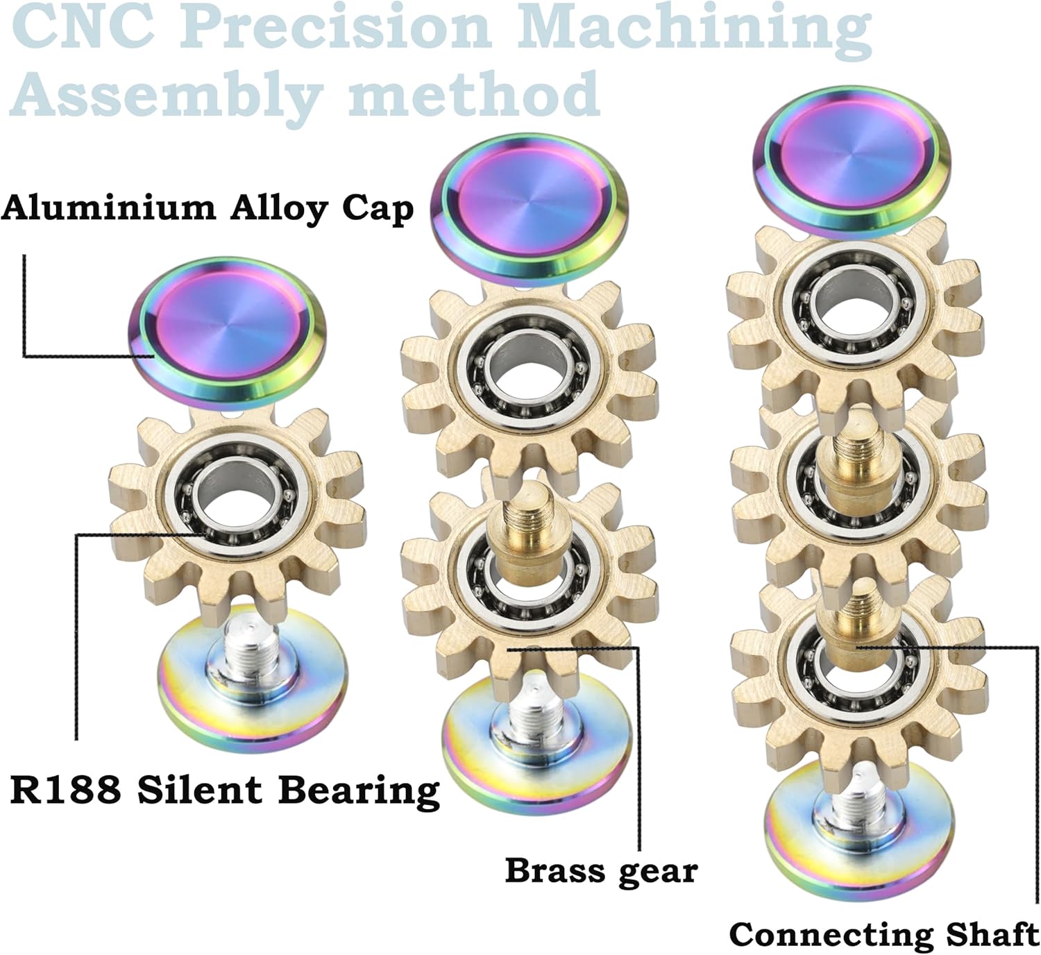 • [Cool Spin] It fantastic spins, brass gear spinning is visually appealing for sure. The gears rotate smoothly on your fingers. The high-speed rotating gear can run vertically on the table like a wheel. Multiple gear gyroscopes running together makes much more fun.