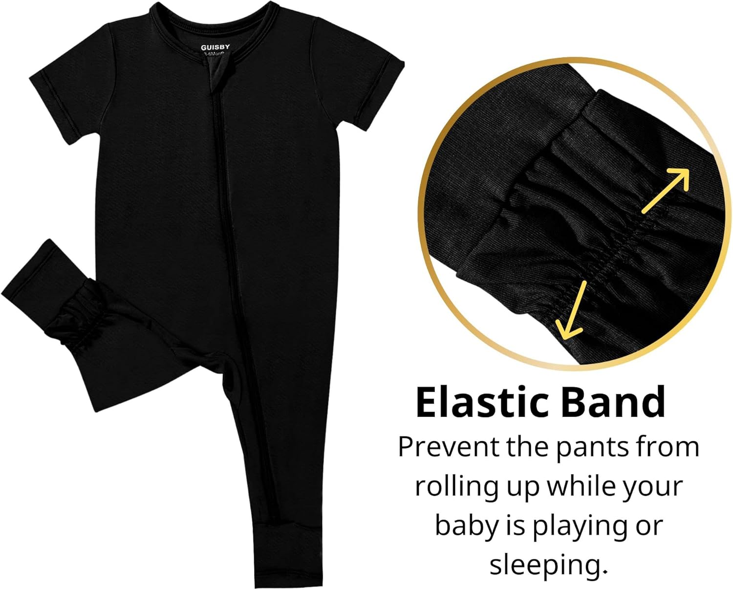 GUISBY Rayon Made from Bamboo Baby Pajamas, Summer Short Sleeve Footless Rompers, 2 Way Zipper Sleeper