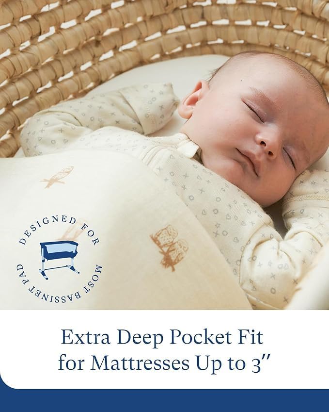 - UNIVERSAL SIZE: Features deep 5'' pockets and durable 360° elastic stitching the entire way around to ensure a perfect fit on all standard bassinet pad and moses basket oval rectangle pad mattress bedside sleeper.