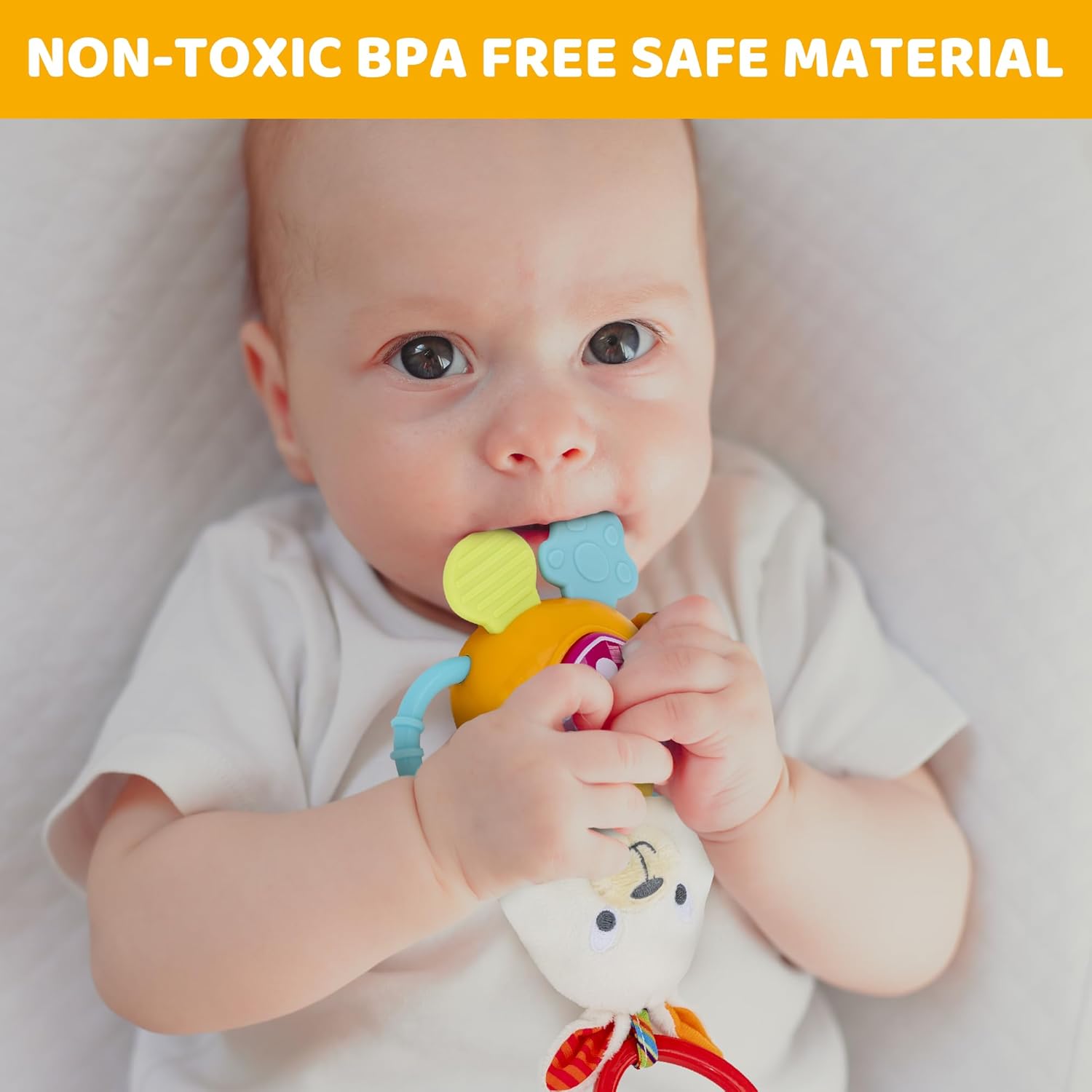- LIGHTS AND SOUNDS – This teether toy has a cheerful light-up heart-shaped button that can be easily pressed by even the tiniest hands to play musical melodies to soothe the babies
