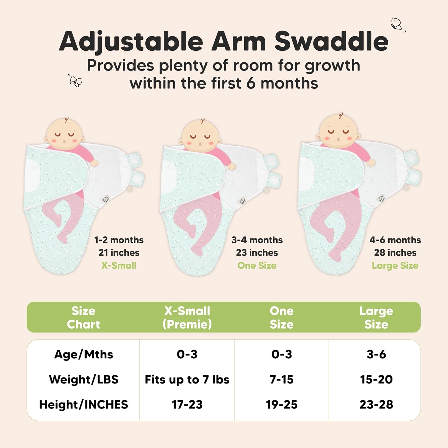 3-Pack Organic Baby Swaddle Sleep Sacks - Swaddles for Newborns, Infant 0-3 Months, Baby Girls, Boys, Soft & Snug Newborn Sleep Sack, Nursery Swaddling Blankets (Garden)