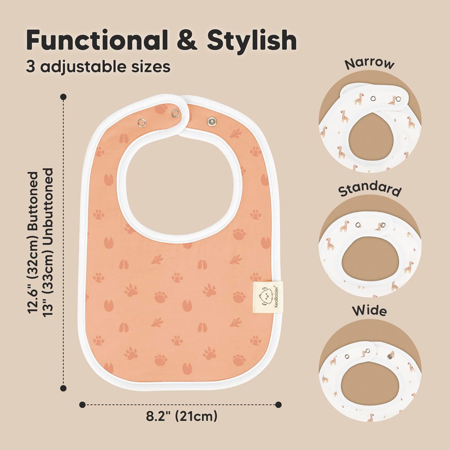 - 3 Adjustable Sizes With Soft Seams - With 2 sets of nickel-free snaps, you can adjust the girl and boy bibs according to your baby’s neckline. The soft-wrapped seams provide extra comfort for your baby while having the baby cloth bibs on.