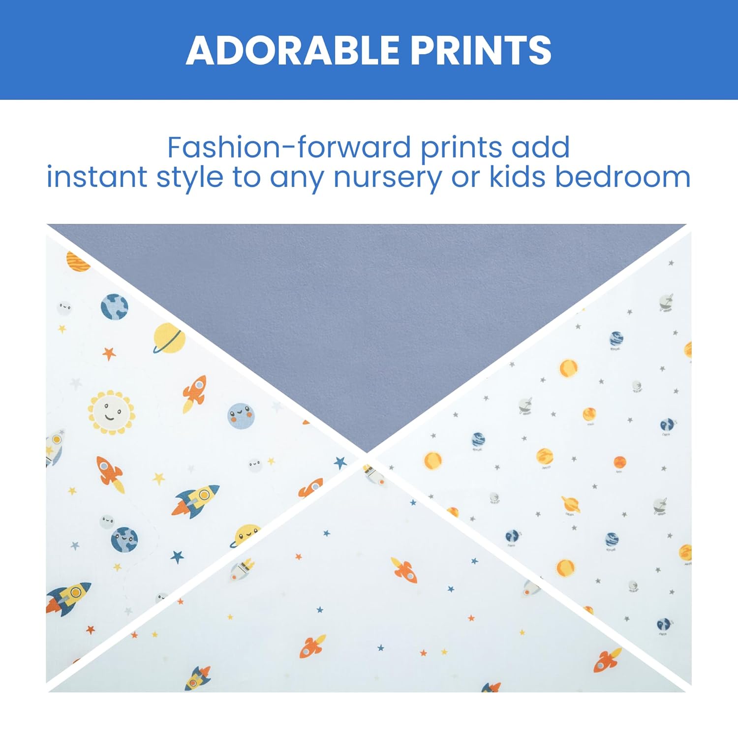 - ADORABLE PRINTS: Available in a number of stylish patterns for girls and boys | Fashion-forward prints will add instant style to any space | Each 4 pack contains coordinating prints that you and your baby will love