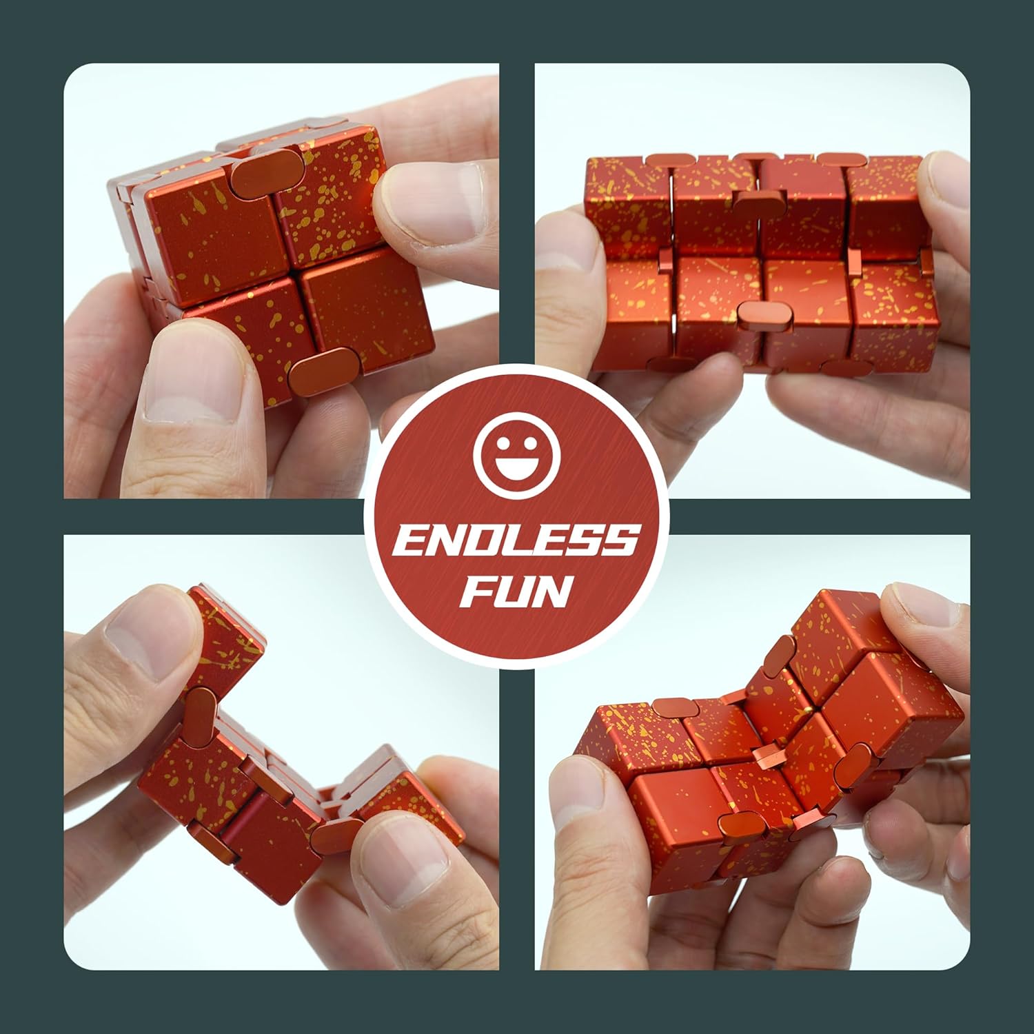 - FIDGET DESK TOYS - Designed for thinkers, creators and makers, this metal infinity cube is ideal for anyone who wants to tap into their imagination and creativity. It also helps you stay focused and relaxed while working, studying or brainstorming. A great fidget gadget, fun toy to improve anxiety and stress