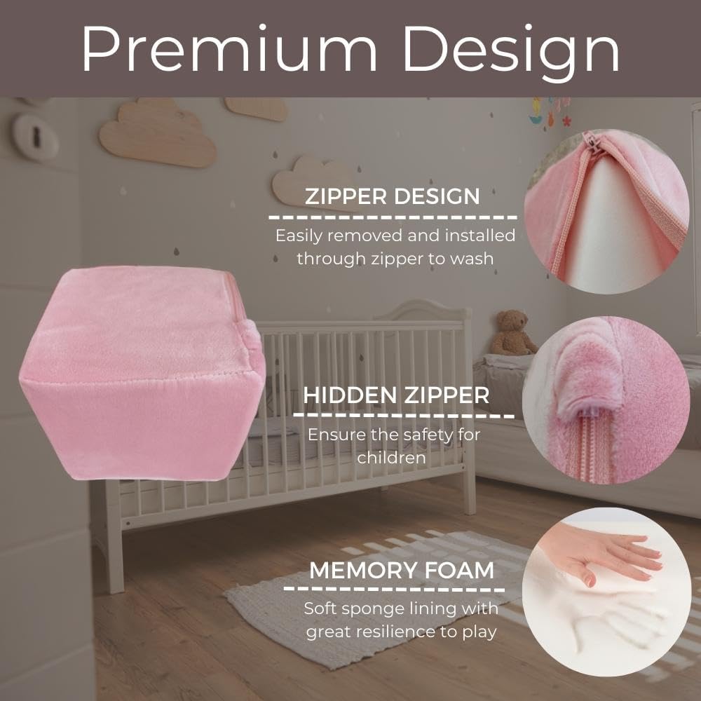 Wonder Space Plush Foam Blocks - Nursery Building & Stacking Toys for Toddlers Boys & Girls, Soft Smooth Velvet Cover, Early Education Gross Motor Skills & Brain Development (12 Cubes, Soft Blush)
