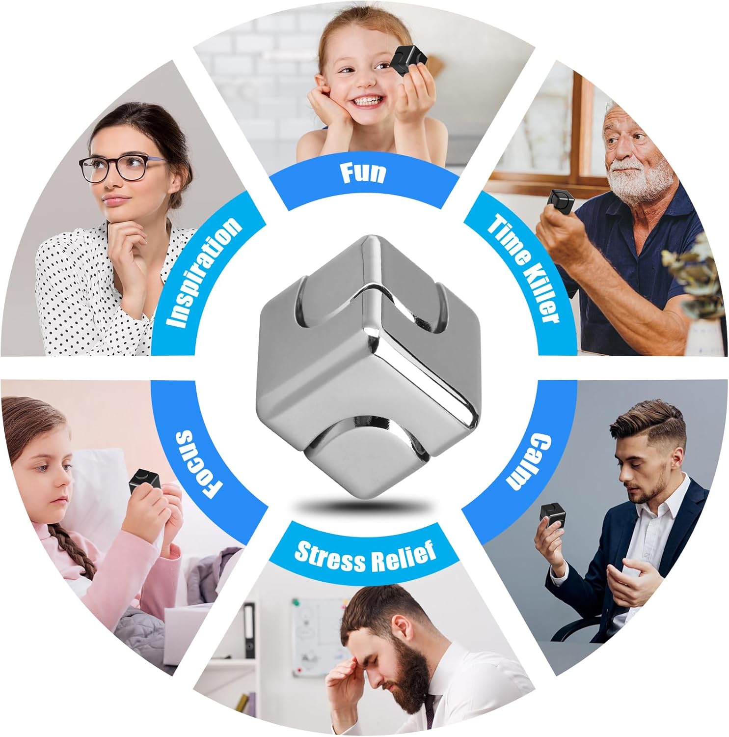 - Desk Toys for Kids & Adults: The Fidget Spinner Cube boasts an exquisite and decorative design, doubling as a stylish desk ornament. When daily life brings irritability, anxiety, or boredom, this cube is at your service for anxiety relief and time-killing.