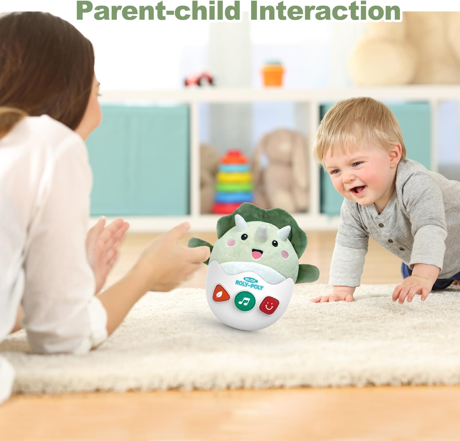 Baby Dinosaur Toys 0-3-6-12 Months, Musical Infant Toys with Light & Sounds, Soft Plush Stuffed Animal, Newborn Boys Girl 1st Birthday Shower Gift, Roly-poly Sensory Tummy Toy Easter Egg Gifts