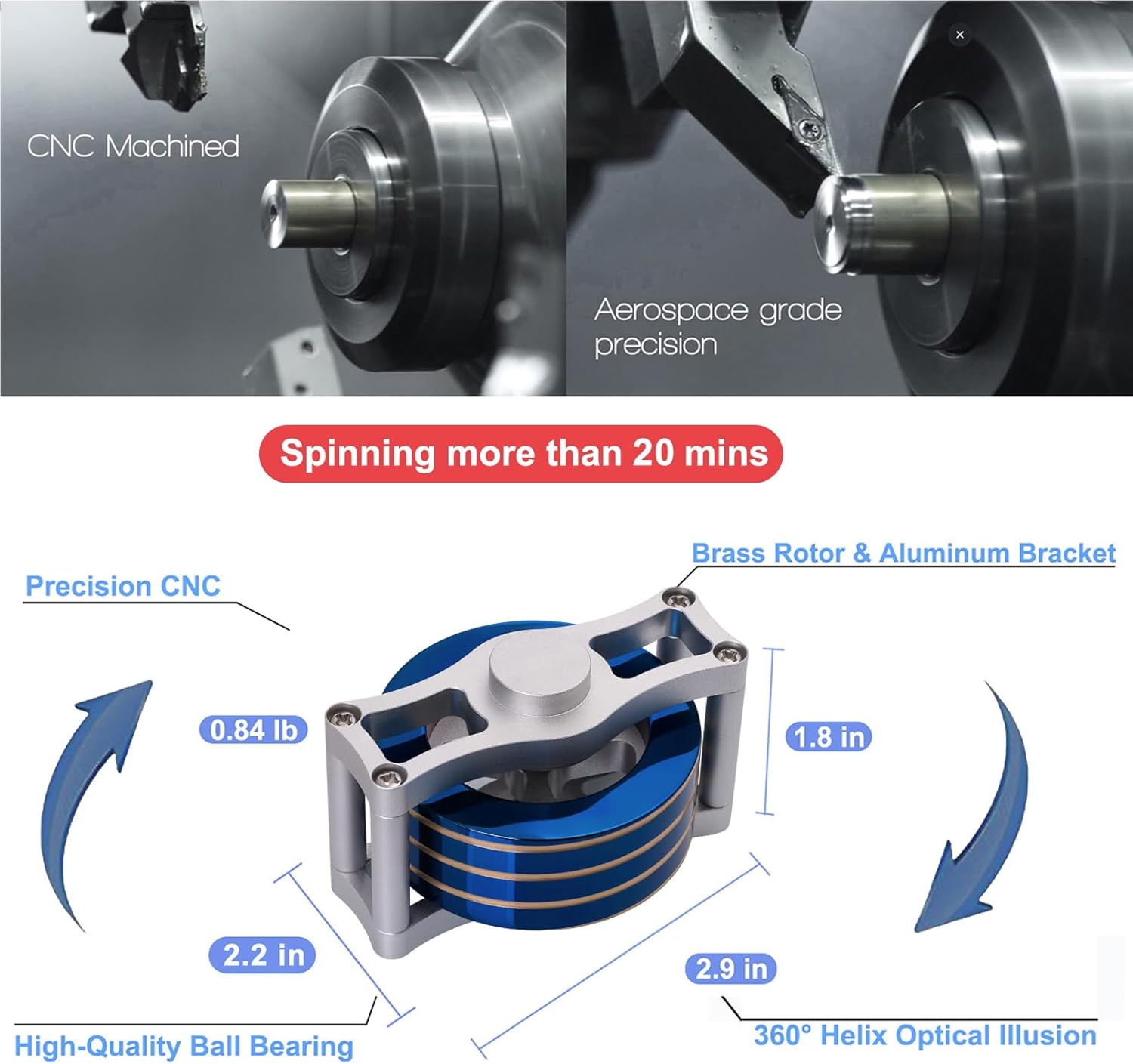 - Visual-Illusion: The brass rotor is engraved with threading to create a spiral effect, creating a 360° full-body optical illusion effect as it spins almost silently. It's a nice choice for creators, makers, and anyone looking to unleash their inner creativity and imagination.