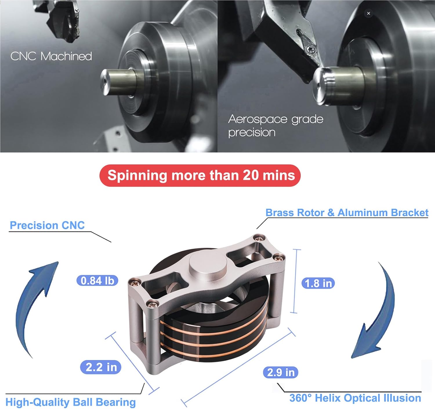 • Visual-Illusion: The brass rotor is engraved with threading to create a spiral effect, creating a 360° full-body optical illusion effect as it spins almost silently. It's a nice choice for creators, makers, and anyone looking to unleash their inner creativity and imagination.