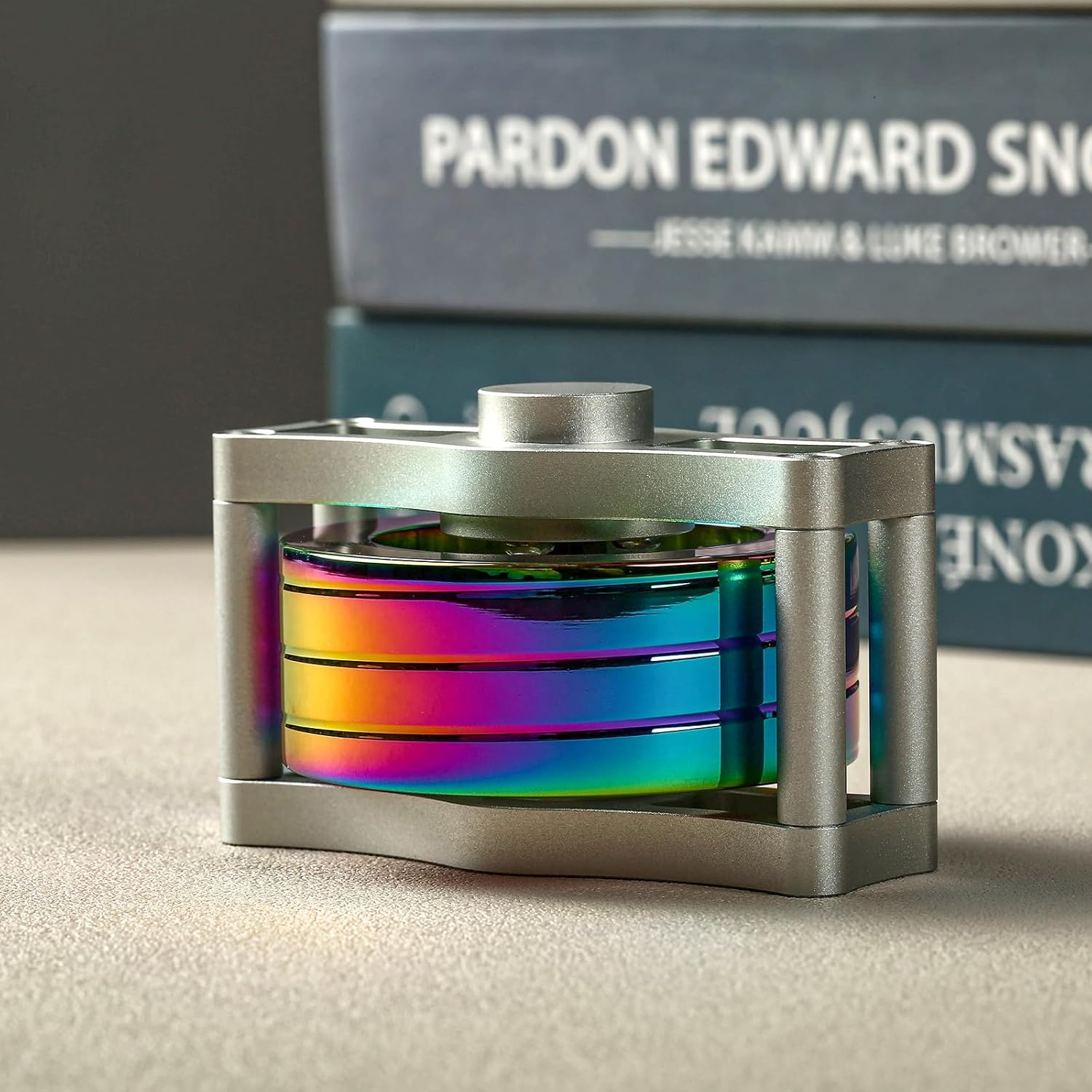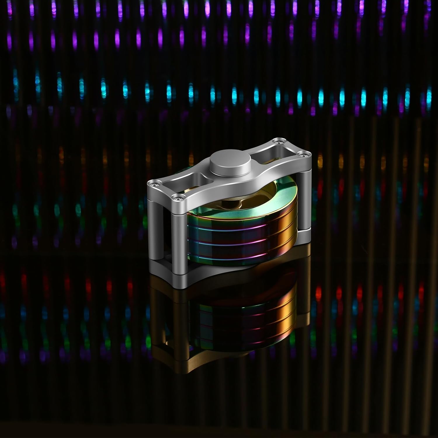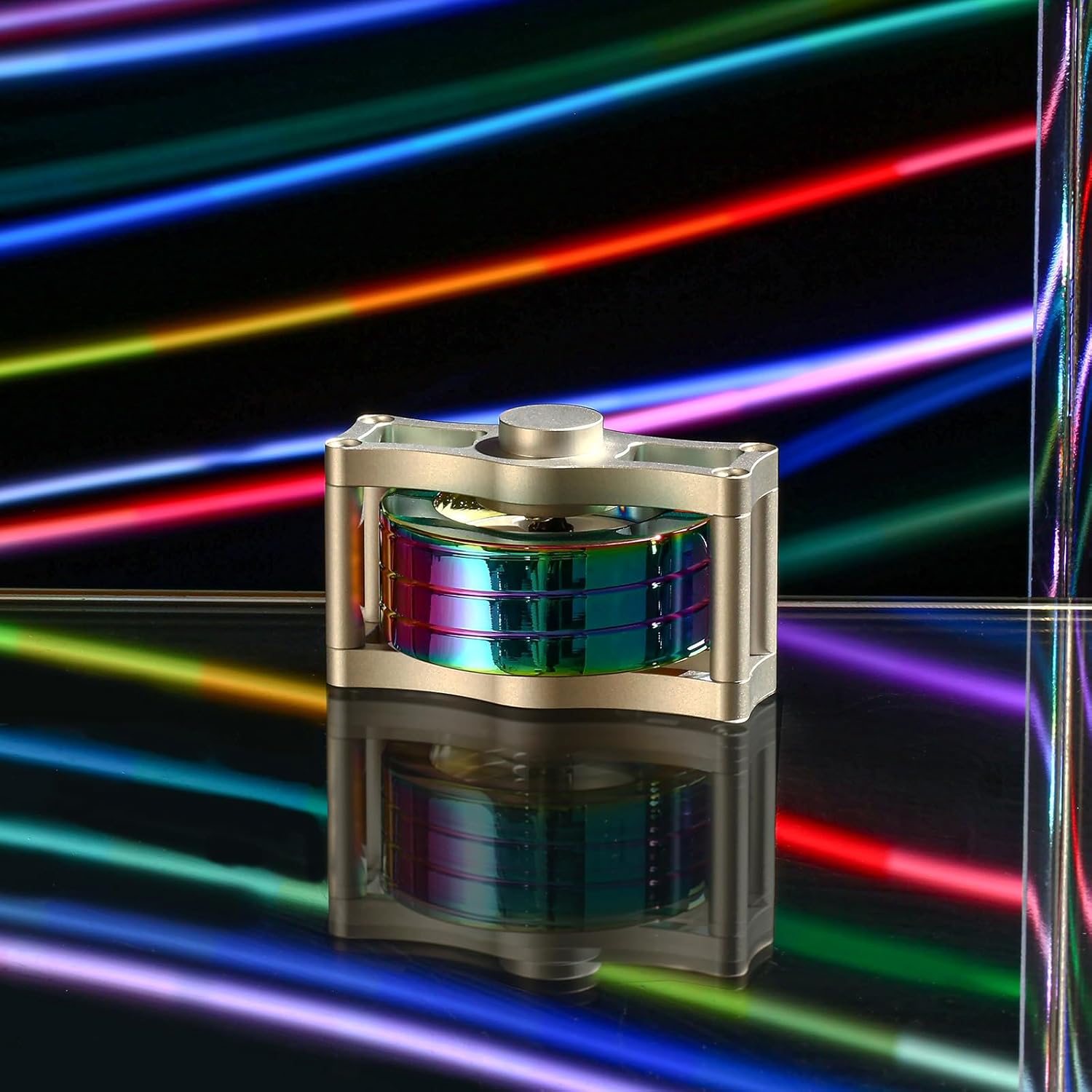 Metal Spinning Top Fidget Toys Perpetual Motion Machine, Silent Spinners Gyro Desk Toys Tech Gadgets for Adults with Anxiety, Kinetic Toy Long Lasting Exceed 30 Mins, Illusion Multicolor